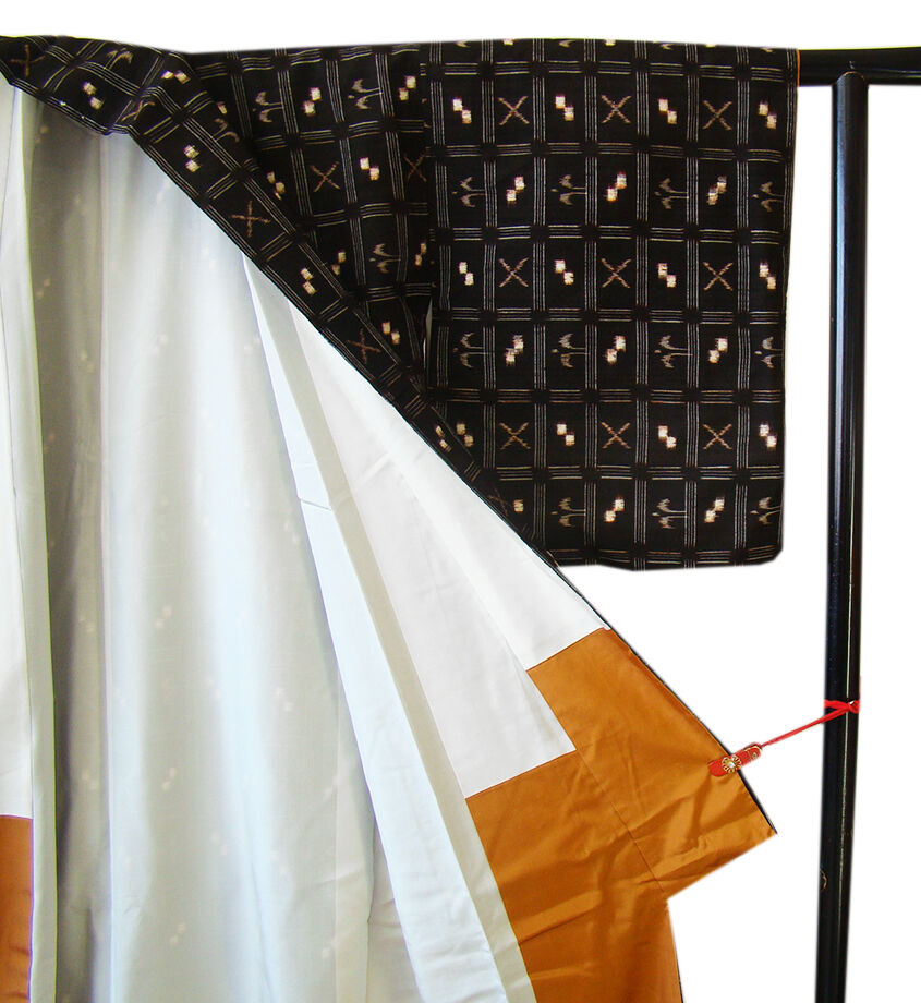 | ちょっと一言 | 洒落帯で粋に〆たいぼそや節も味わい深いふっくらとした上田紬のシックな黒地の紬着尺です。 帯や小物次第で様々なコーディネートをお愉しみ頂ける事と思います。 |