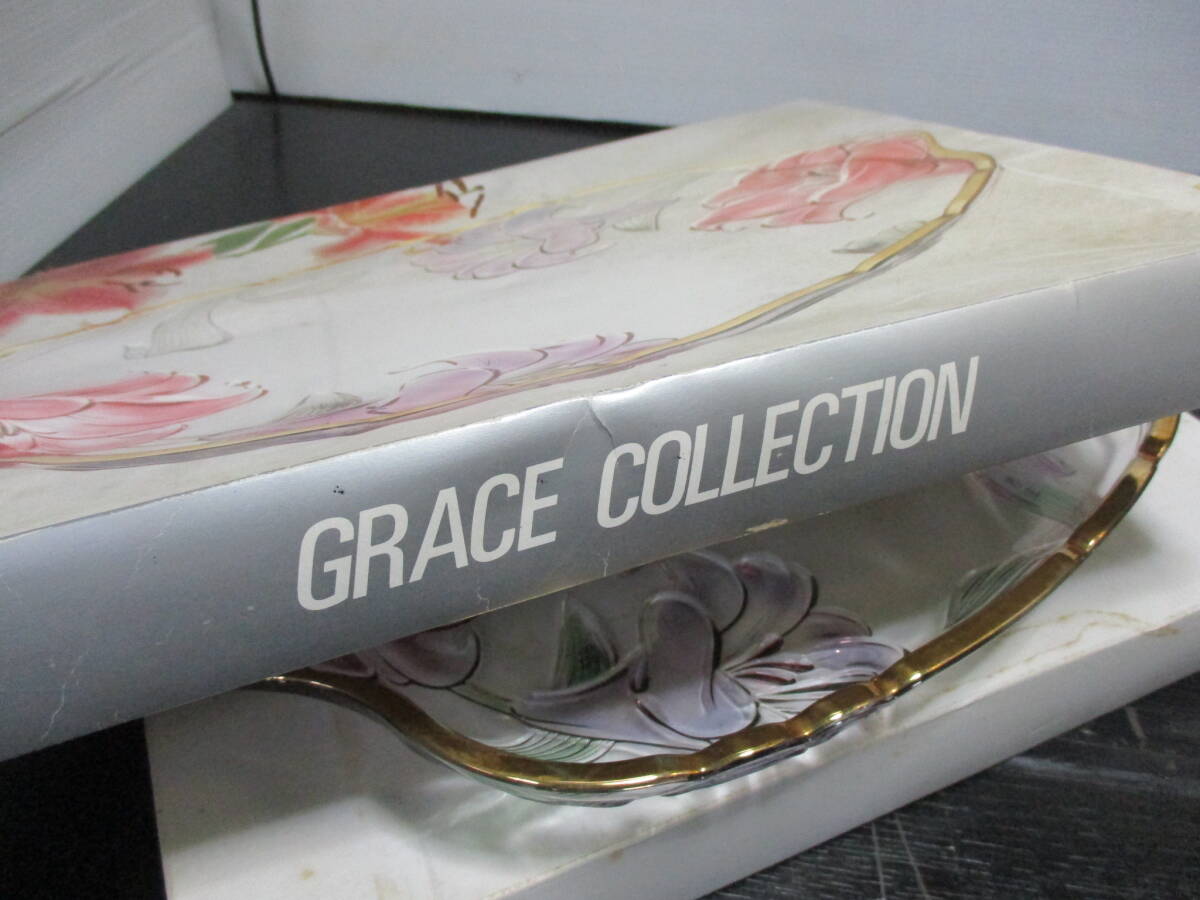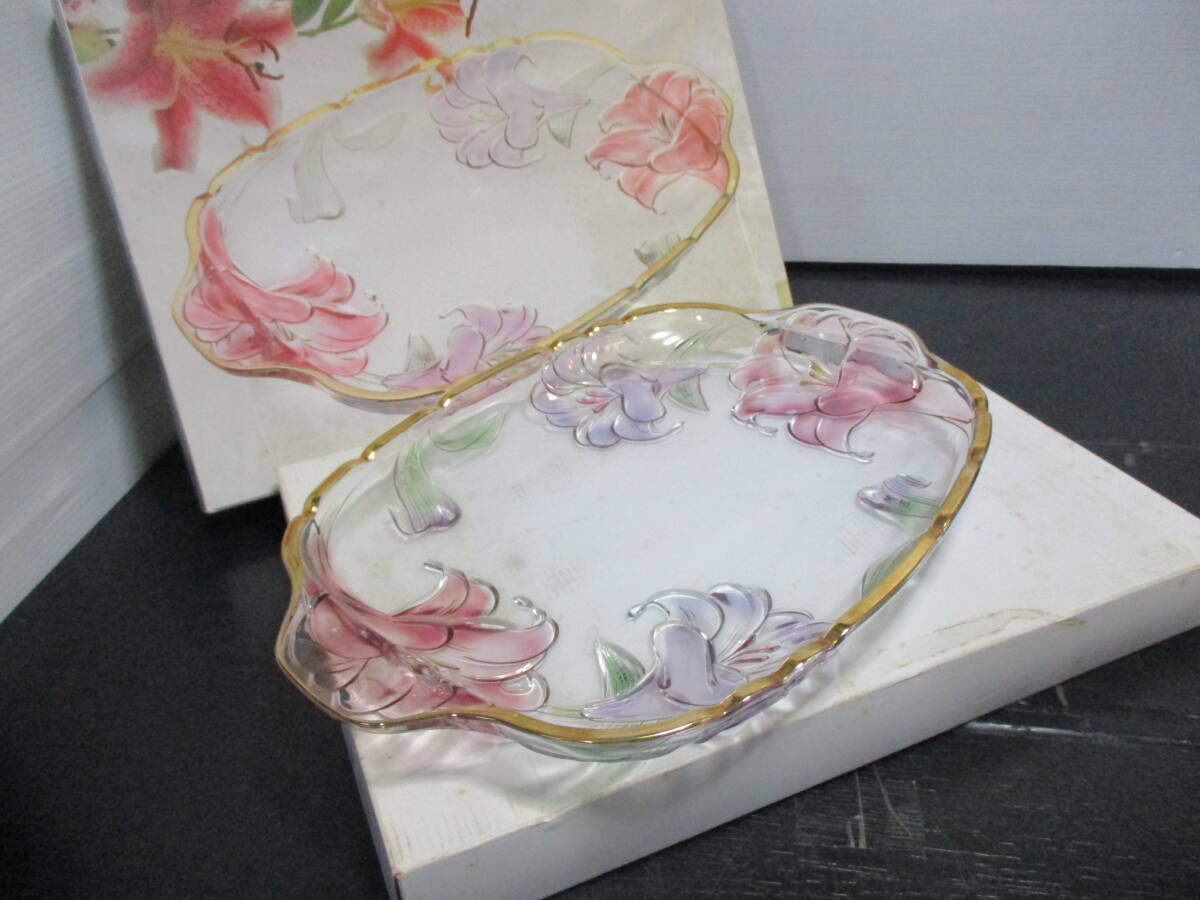| ★ガラス製 ユリ手付長角皿 TH-163 未使用(お 100 №第19 7.3.28 ) | ||