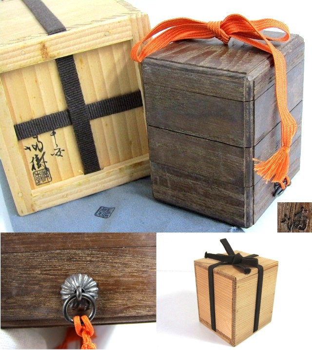 志野流 上杉満樹 作 桑製 重香合 三段重 共箱【説明欄に詳細写真有り】の出品です。