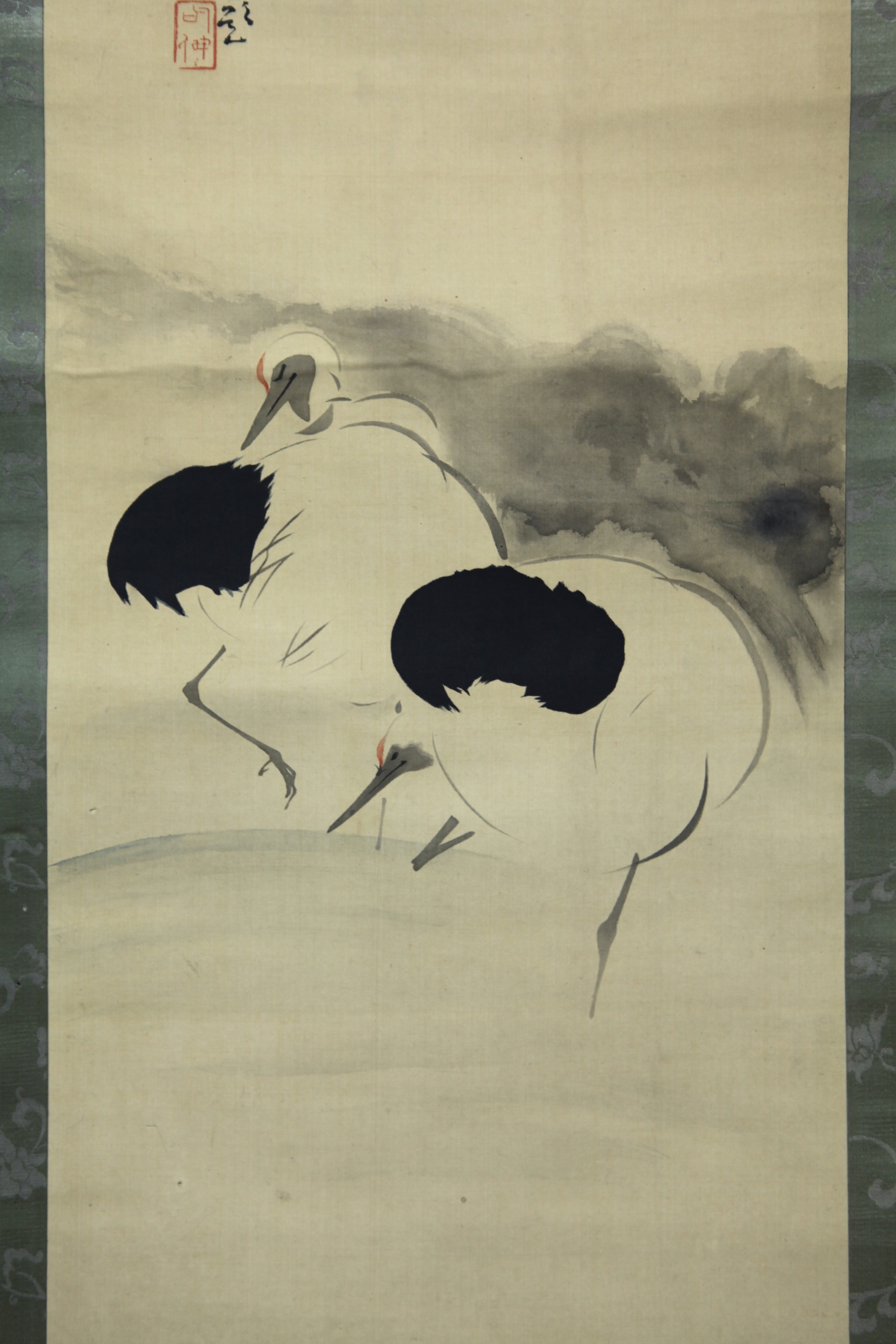 | 【真作】【風車】 大谷句仏 「鶴の図」◎肉筆絹本◎京都の人 浄土真宗 俳人 東本願寺二十三世 伯爵 現如上人 | ||||||||||||||||||||