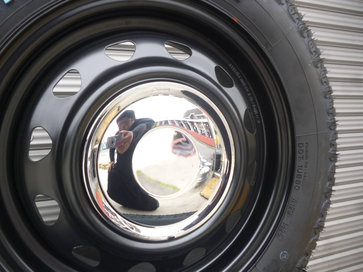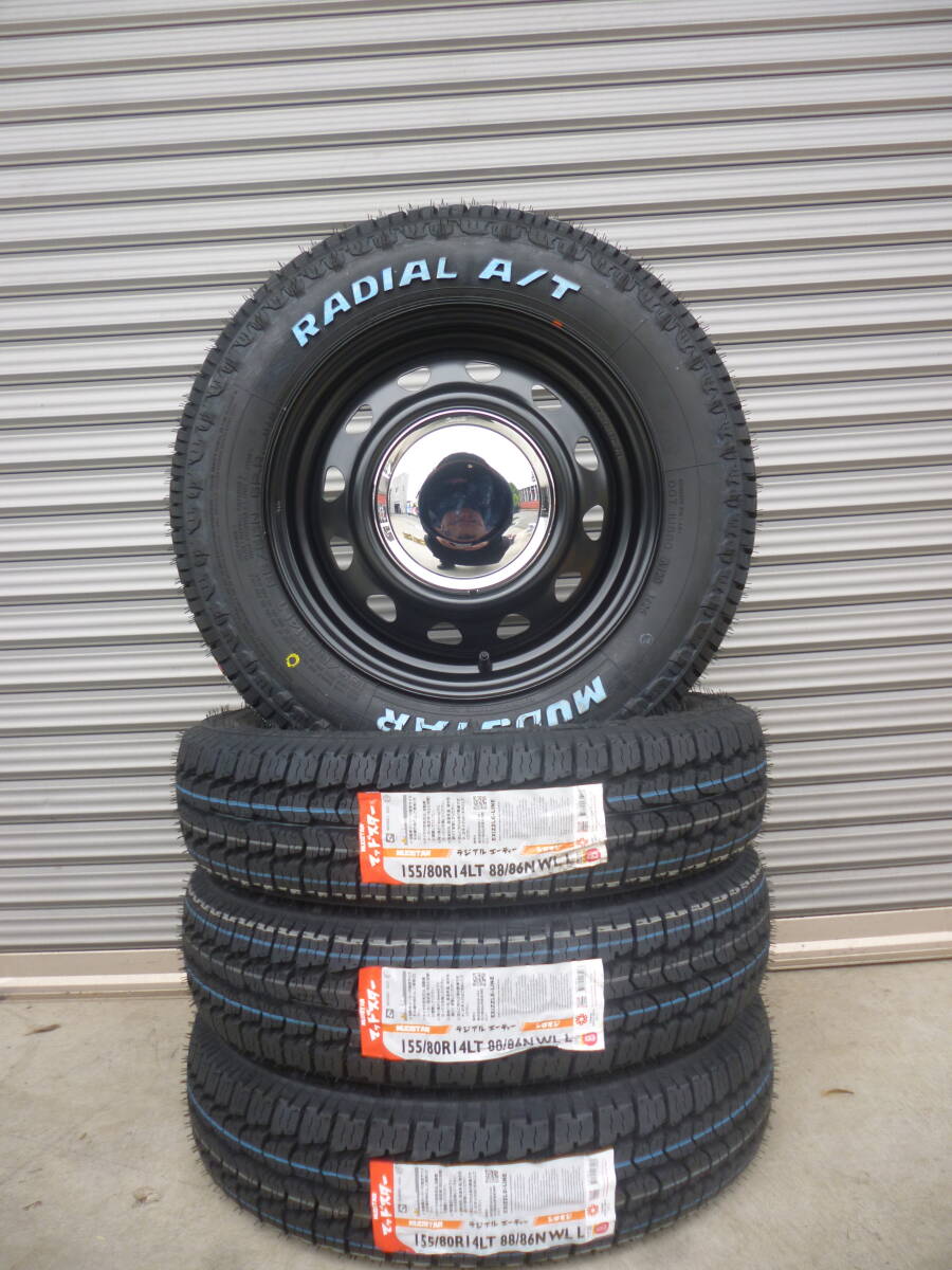 商品詳細 【ホイールサイズ】 F:R 14×4.5J オフセット45 PCD:100-4H ハブ径67mm 【タイヤサイズ】 F:R 155/80R14LT 88/86N 新品 マッドスターラジアルA/T 【ホイール】 ・ホイールは新品未使用品になります。 ・カラーは、ブラック/センターキャップクロームになります。 ・新品未使用品ですが、多少の小傷や汚れ等がある場合がございます。 状態は画像を参考にして下さい。 【タイヤ】 ・タイヤは新品未使用品です。 ・多少のラベルの剥がれ等はご了承下さい。 ●タイヤ、ホイール共に状態は個人差がございますので、画像を参考にして下さい。 ※マッチング等はご落札前に必ずネットやお店等でお調べ下さい※ (題名に記載がある車両でもマッチング等は必ずお調べ下さい) ☆午前中に入金確認が取れた方のみ当日発送になります。 ※法人のお客様は平日14時までのご入金、土曜日11時までのご入金で当日発送できます。 ※その他詳細はつきましては、説明文を最後まで良くお読み頂けますようお願い致します。 | |||