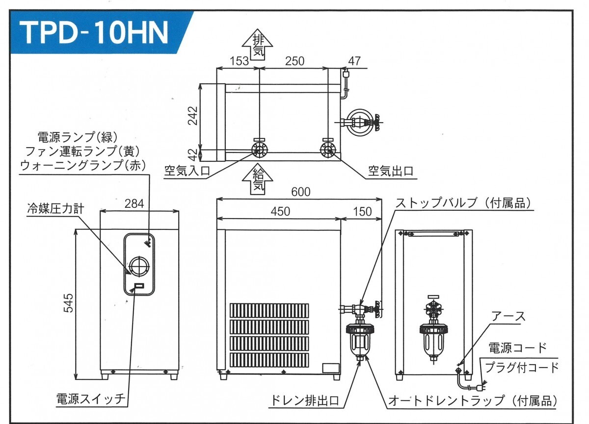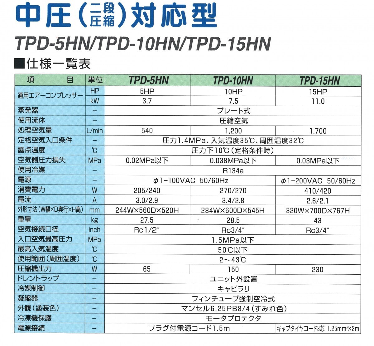 エアードライヤー コンプレッサー 東プレ TPD-10HN 10馬力対応 エアーコンプレッサー用