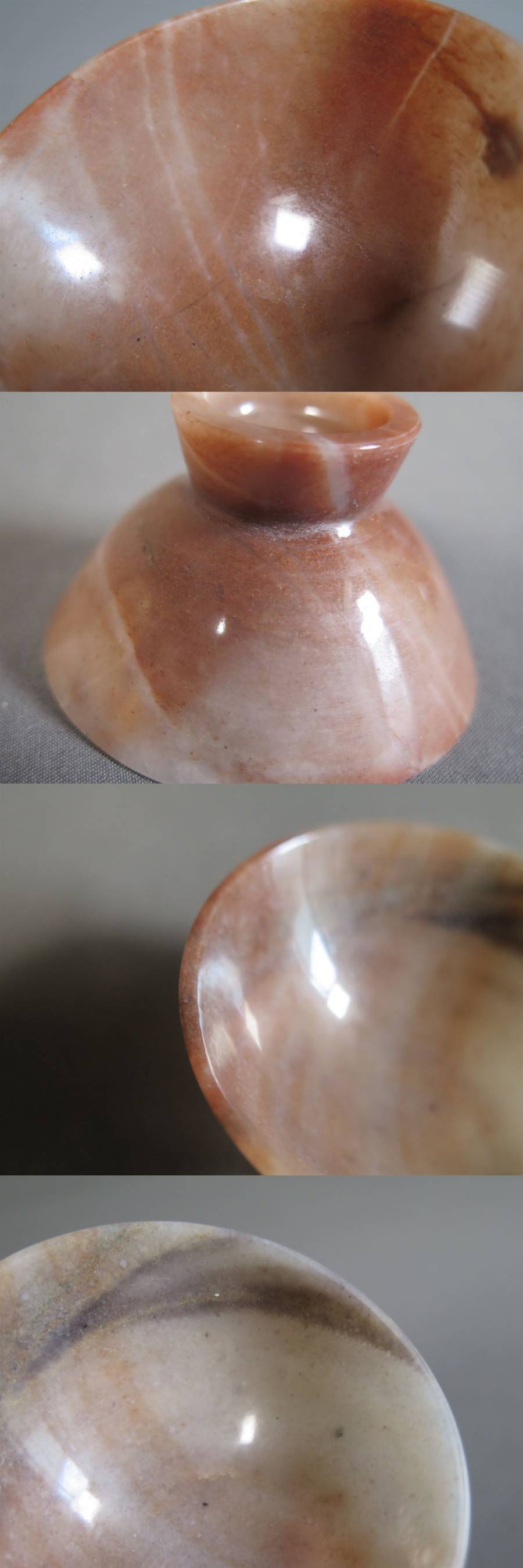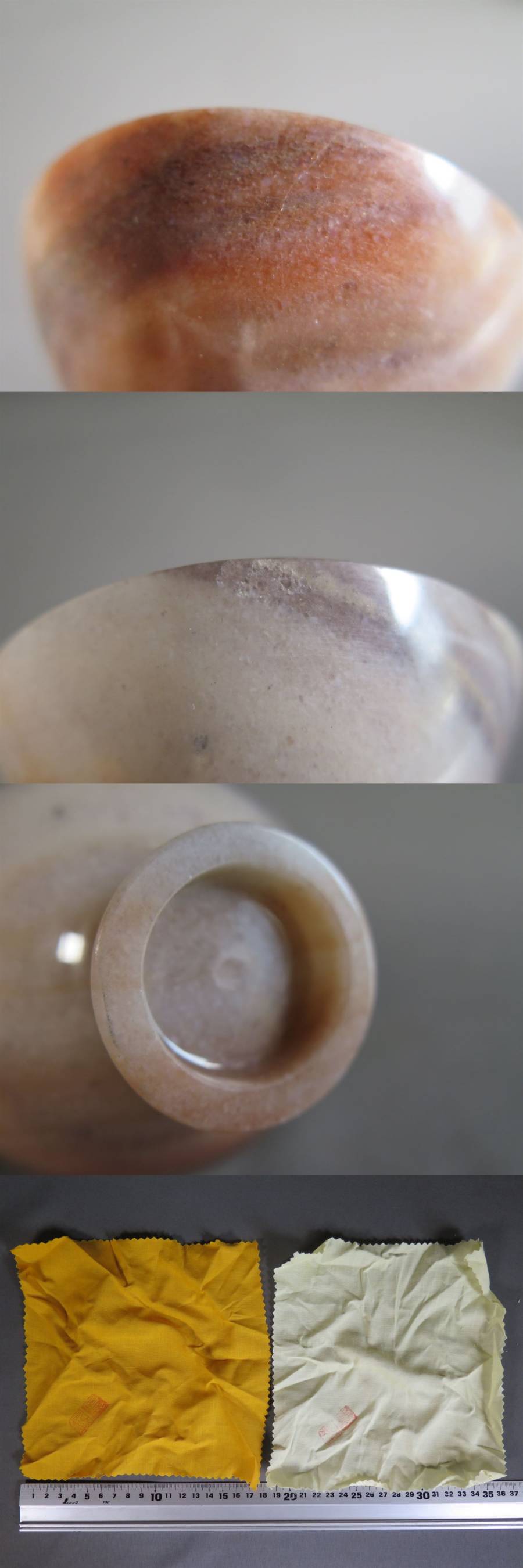ユーズド品 使用感の少ないお品です。赤みが強い方の盃にうっすらヒビがありますが、元々の素材の風合いだと思われます(写真7枚目参照)。その他、少々のイタミ・スレ・キズ・ヨゴレ・劣化などがあります。 新品・完全なものをお求めの方は入札をお控えください。 |