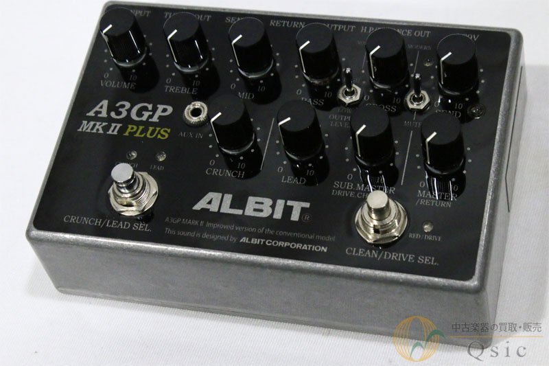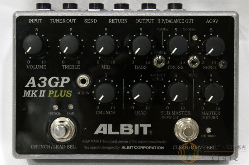 | 商品説明 | ハイエンドなプリアンプ・ペダルを多く輩出する国産ハンドメイドブランド、ALBIT によるプリアンプ「A3GP MKII Plus」です。 「ギター本来の音を忠実に再現する」というコンセプトの基に開発された当機。真空管12AX7 を本体内部に実装しており、実に立体感と迫力のあるサウンドを出力します。キャラクターとしては、透き通るように雑味のないクリーンサウンドと、マイルドで実に扱いやすいドライブサウンドが特徴です。 クリーンとドライブの2チャンネル構成となっており、フットスイッチにより切り替えることが可能。加えて、ドライブチャンネルはCRUNCHとLEADの2モードを搭載し、こちらもフットスイッチによる切り替えが可能です。また、3バンドEQをはじめとした多彩なコントロールにより、非常に幅広いサウンドメイクを実現します。 入出力端子も豊富で、チューナーアウトやセンドリターン端子など、実用性の高い機能を搭載。多様なセッティングが可能で、様々な機材との併用に対応することができます。 ペダル型エフェクターの枠では収まらない、多様性と実用性、サウンドクオリティを兼ね備えたハイエンドモデル。最高品質のプリアンプをお求めの方には大変おすすめの1台です。 この機会にぜひご検討ください! メーカーサイトはこちら 【状態】 目立った傷やダメージはなく、中古品としましては大変綺麗な外観です。 もちろん動作は確認済みでございます。使用感の少ない商品をお探しの方に大変おすすめです。 |