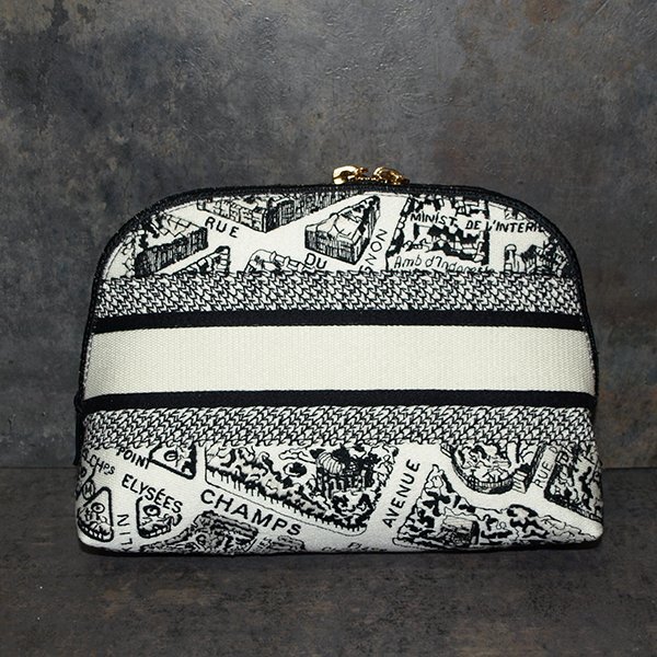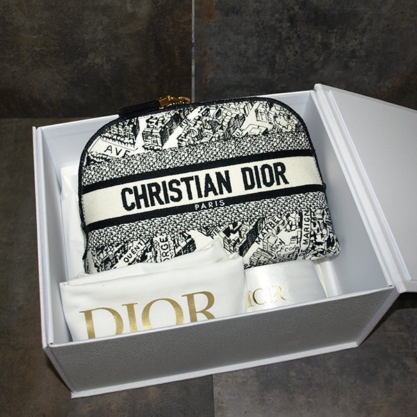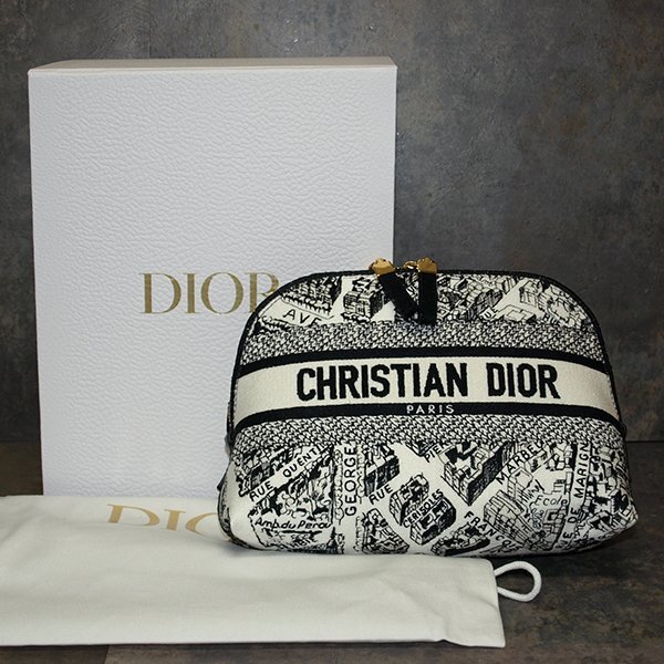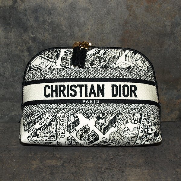 | 未使用・Christian Dior◇クリスチャンディオール・キャンバス生地 ポーチ◇ホワイト×ブラック 底マチ225×85mm