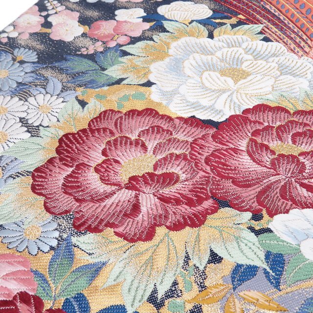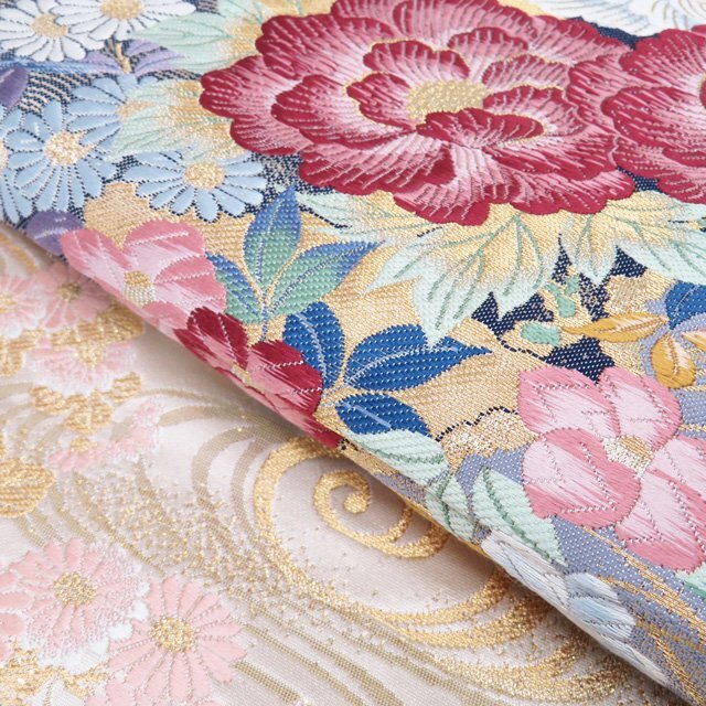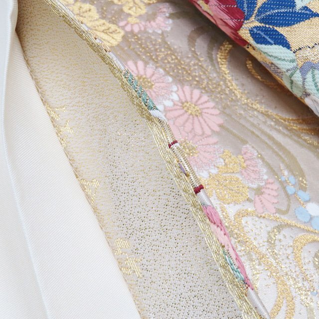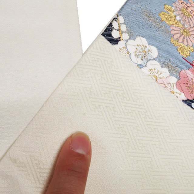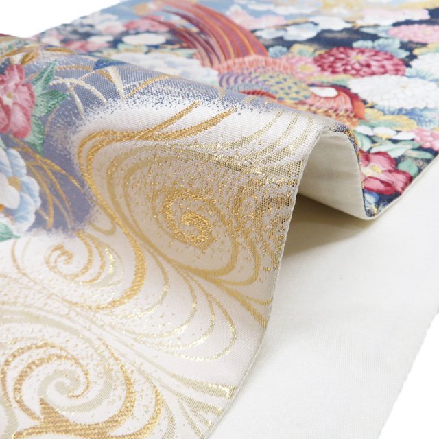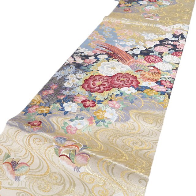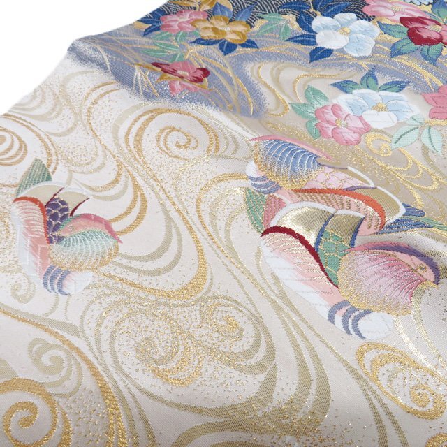サイズ 428.5cm x 31cm 素材 正絹 商品ランク B ●お色 象牙色 多色 金 中無地と裏に1つずつ緑色の点がございますが、まだまだ問題なくご着用いただけるお品物です。 写真に写っている帯のみの販売で、小物等の付属品はついておりません 一部商品は実店舗・他サイトでも並行して販売しておりますので売り切れの際はご了承ください。 その他多数販売中 n | ||||||