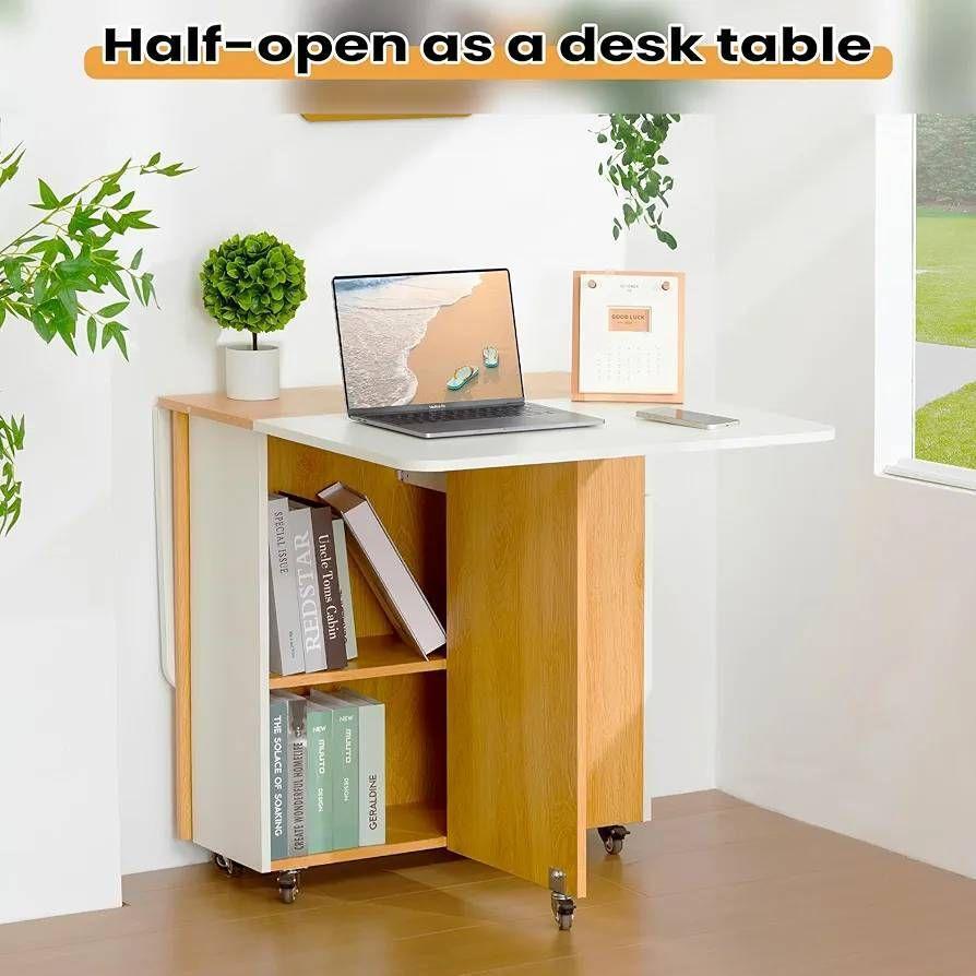 【2段収納棚と引き出し】2段収納棚と折りたたみ可能なテーブル下引き出しは、キッチン用品、本、文房具などが便利です。日常の物を収納したり、キッチンやリビングの散らかりを解消したりするのに最適です。