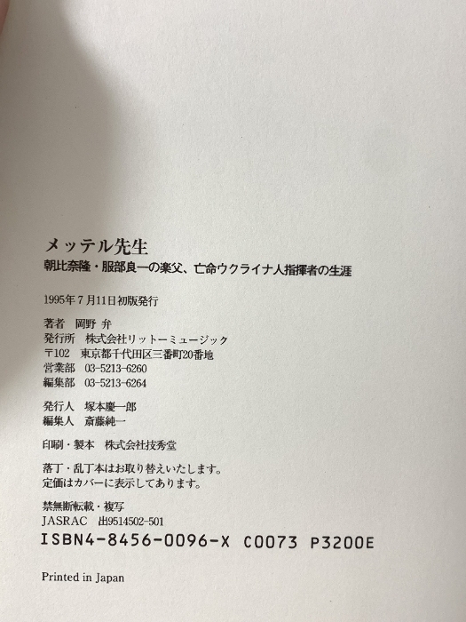 | メッテル先生: 朝比奈隆・服部良一の楽父、亡命ウクライナ人指揮者の生涯 リットーミュージック 岡野 弁 | ||||