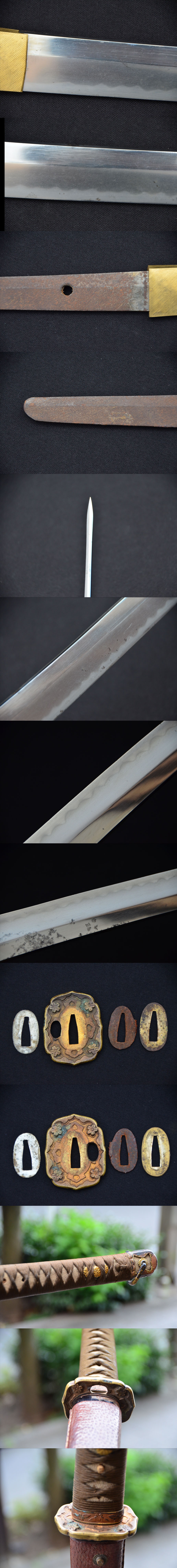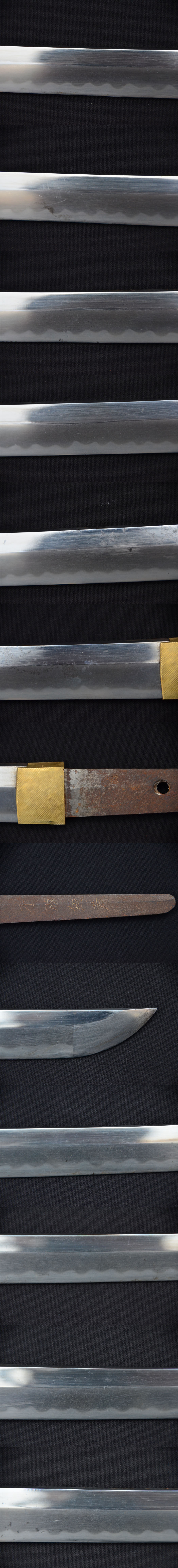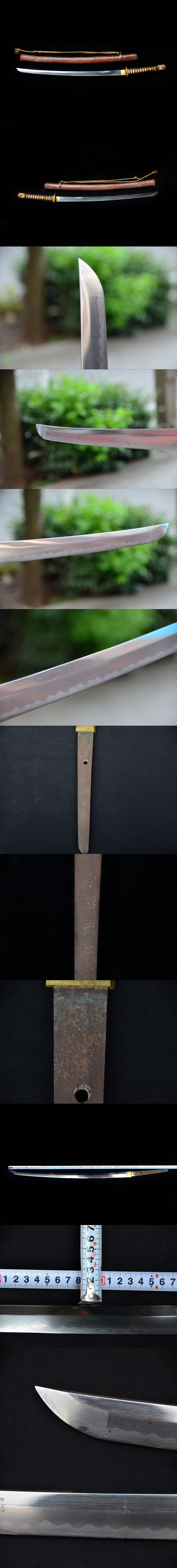 2.サイズ:815.0g(鞘など含まない状態ですが、ハバキが外れないのでハバキ込の重さです) 刃渡り31.85cm 全長43㎝ 反り0.2㎝ 目くぎ穴1個 先幅23mm 先重4.8mm 元幅32mm 元重7.1mm