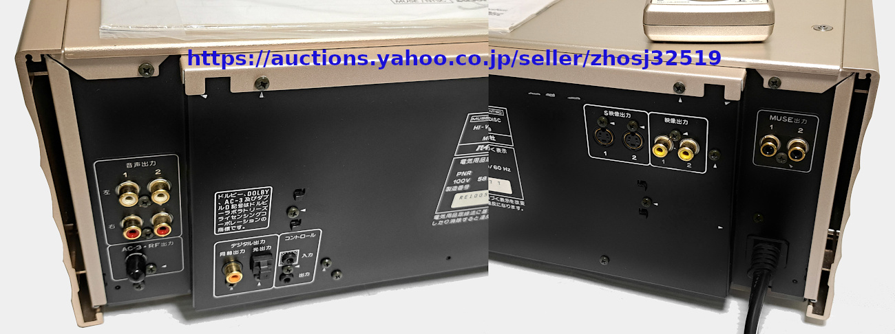 | ・Playback: | MUSE and NTSC discs, both A/B sides play well from start to end, seek, scan also work without problems. All output terminals (Composite Video/S-Video/Analog Audio/Digital Audio(Coax/Optical)/AC3RF/MUSE) working. |