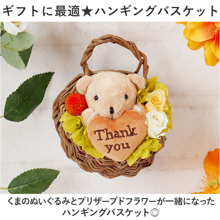 | 商品説明 | ・・かわいいくまちゃんが「ありがとう」を届けるプリザーブドフラワーアイテムが新発売! ・【ありがとうを届ける★】 ・感謝の気持ちを伝える、特別なギフトアイテム☆ ・【ギフトに最適★ハンギングバスケット】 ・くまのぬいぐるみとプリザーブドフラワーが一緒になったハンギングバスケット◎ ・【プリザーブドフラワーでお手入れ簡単】 ・プリザーブドフラワーが長い期間新鮮さを保持、美しさが続く! ・【かわいいピンクと元気なオレンジの2カラー】 ・ピンクとオレンジの2つのカラー、どちらも鮮やかで目を引くこと間違いなし☆ ・【Thank Youのハート型メッセージ付き】 ・心をこめた感謝の気持ちを伝えるハート型メッセージ付き♪ ・【色んなギフトシーンに最適】 ・誕生日や記念日、さまざまなギフトシーンで最適な一品◎ |