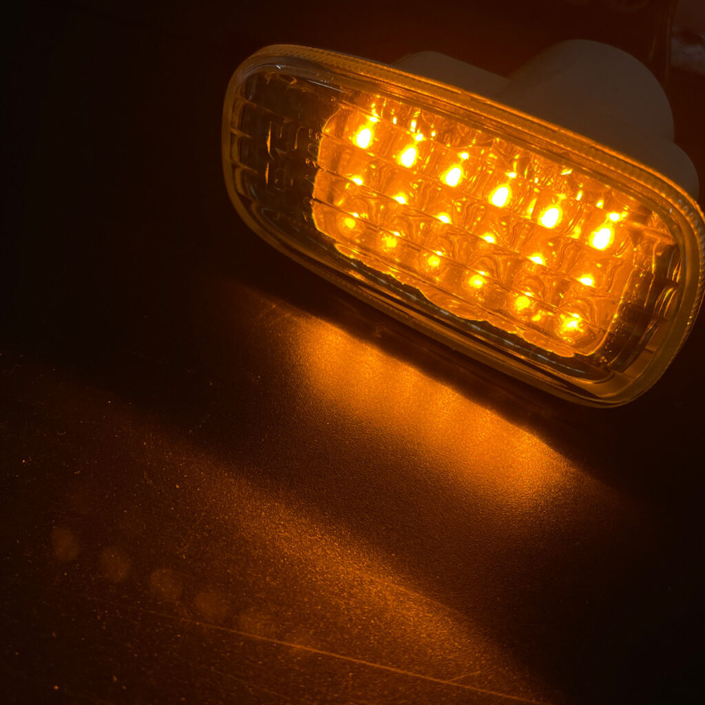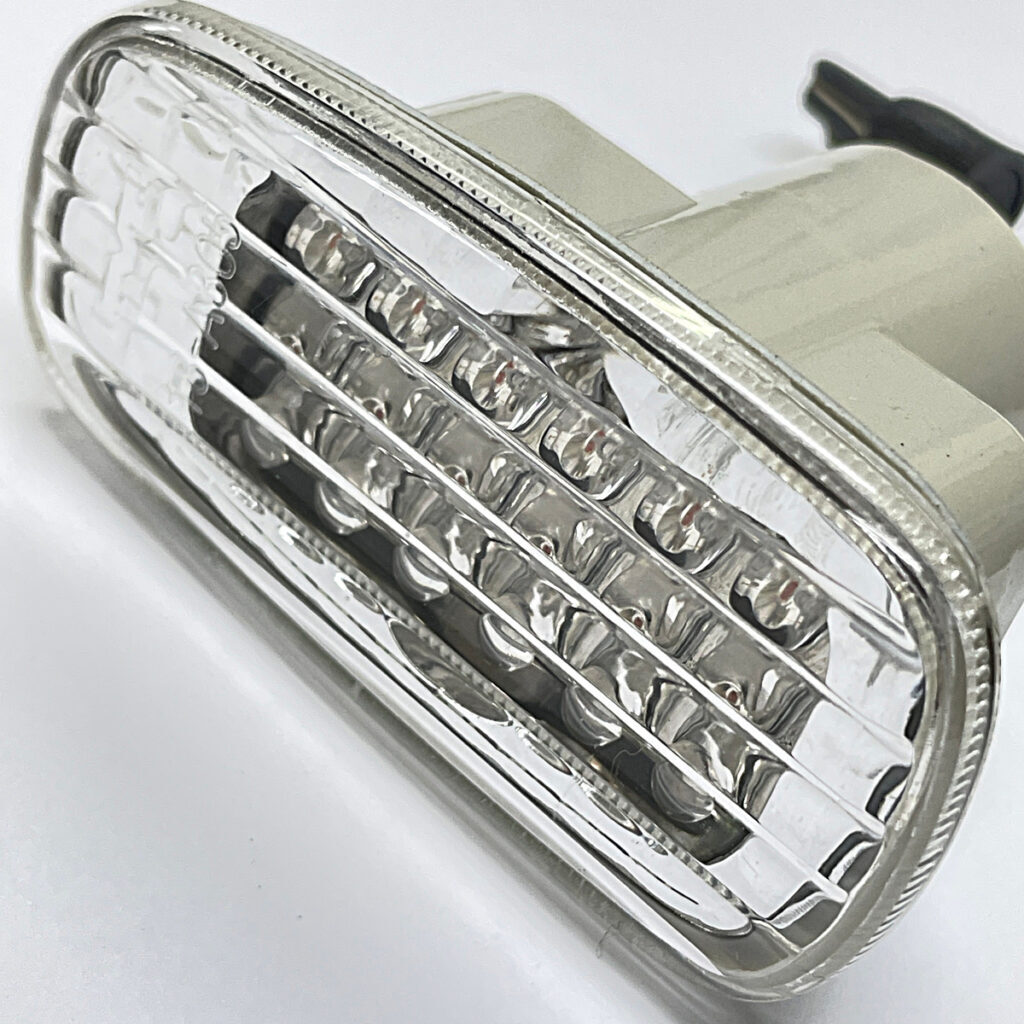 | ■商品説明 | ●片側18個、左右計36個のLEDをレンズ内のフラット基盤に配置 ●フラット形状のクリスタルレンズを採用 ●カットが施されたクリアレンズがサイドビューを引き締めます ●LEDによる歯切れの良い点滅発光がナイトシーンを彩ります ●LED光源のシャープな発光は、視認性を向上させ、安全面にも寄与します ●純正バルブを外した車両ソケットに差し込むだけの簡単接続 ●配線カットなどの加工は必要なく取り付け可能です |
