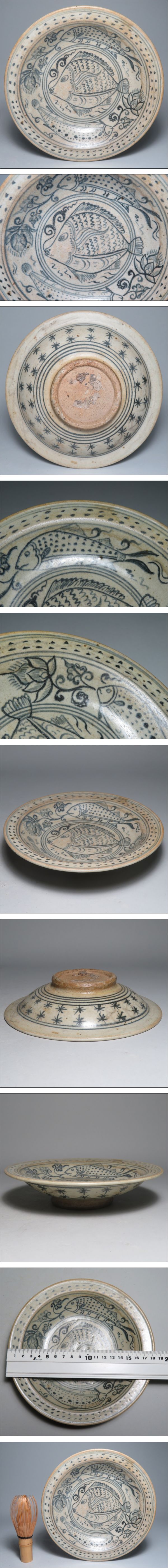 「都内コレクター所蔵品」ベトナム(越南)時代古陶 安南染付花魚文皿 安南焼 東南アジア古陶器 | |||