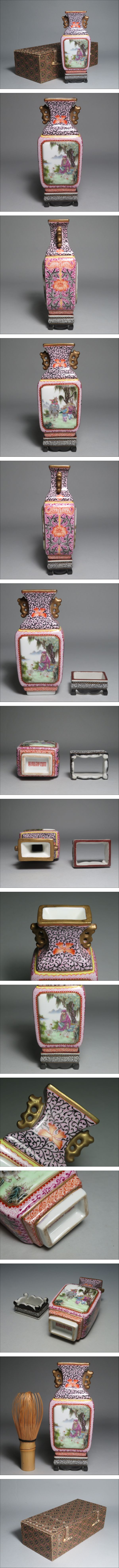 【東】清時代「大清乾隆年製」粉彩人物図双耳瓶 中国美術/古美術・骨董品 | ||