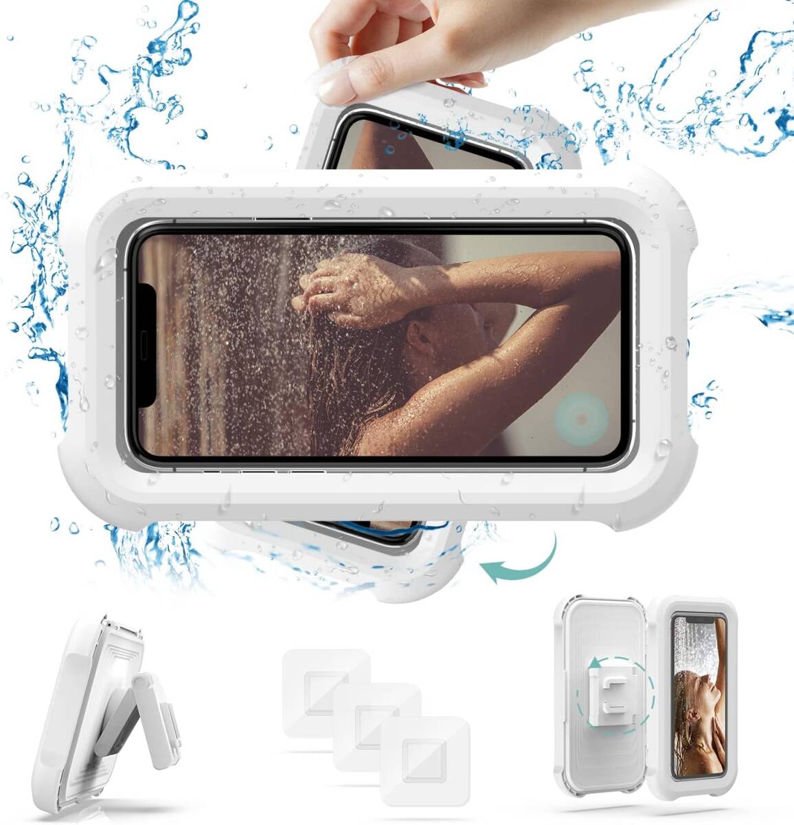 【強化版防水ケース・防水防曇防汚】 Trywon強化版のお風呂防水ケース本体は強化プラスチックと強化ゴムの合成ABS素材、2重構造の防水加工がありシリコンゴムが内蔵されて、ケースに入れたままで、密封性がよくて防水防霧性能も高めになります。葉を撫でるようなサラサラ手触りで、夏にもベタベタに心配いりません。ご注意★防止機能付きますのでお風呂でも使用できますが、完全に水に浸さないでください。 【貼り付けシール3枚付き・穴あけ不要・跡なし】 当社のスマホスタンドには、ガラス、金属、木製デスク、セラミック壁などの平らで乾いた表面ならどこにでも接着する強力な貼り付けシール3枚が付属しています。 そして、穴開けが不要なので、釘はいらない、取り付け面をキズつけることもありません。布で壁を拭き、保護フィルムをはがし、壁にしっかり貼付すれば完了です。ご注意:使用不可の壁面:石灰壁、壁紙、セメント壁、ペンキ壁など滑らかではない壁。 【上品な透け感極上の触り心地・絶妙な一体感】 何百回に及ぶ試行錯誤によって厳選した原料を使用し、高級感あるフイルム仕様に仕上げ、従来より一層の触感を生み出します。この壁掛けケースのフイルムはわずか0.23mmの厚さで、高感度と高透明性を備えた環境に優しいTPU素材で作られています。 98%の透過率を実現し、画面の色彩を鮮明に再現できます。画面の切り替え、進行状況のプル、音量の調整を自由に行うことができます。 高解像度の画質とクリアなサウンドで快適なシャワーをお楽しみください。 【高さ調整可能・角度自由調節・優しい設計】 従来品と比べると、この浴室壁掛けケースは角度調節の問題を改善され、伸縮可能となります。スタンドの角度調節のニーズを満たしています。 最大6cmまで伸ばせます。そして、360度自由回転設計で、縦や横、斜めにしても問題ありません。目線に合わせて細かな調整もできるので、好みに合わせてデバイスが最適な高度・角度を調整します。 【卓上壁掛けの2in1仕樣・実用性100%】 強力貼り付けシールが付いてる壁用スタンドを滑らかな壁に設置すると、普通の卓上ホルダーから壁掛けスタンドに大変身! シール3枚付属、卓上が適用できない場合もガッチリ固定できます。ご要望によって組み合わせて、卓上ケースまたは壁掛けケースとして使用可能です。