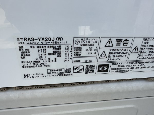 日立 HITACHI 白くまくん 2019年 2.8kw 10畳用 冷暖房 ルームエアコン RAS-YX28J 自動フィルター清掃です。