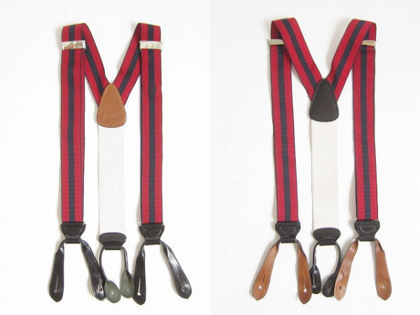 | 商品説明 | 英国製ブルックスブラザーズ ストライプ×レザー ボタンタブ サスペンダーです。 参考価格14000円程のお品です。