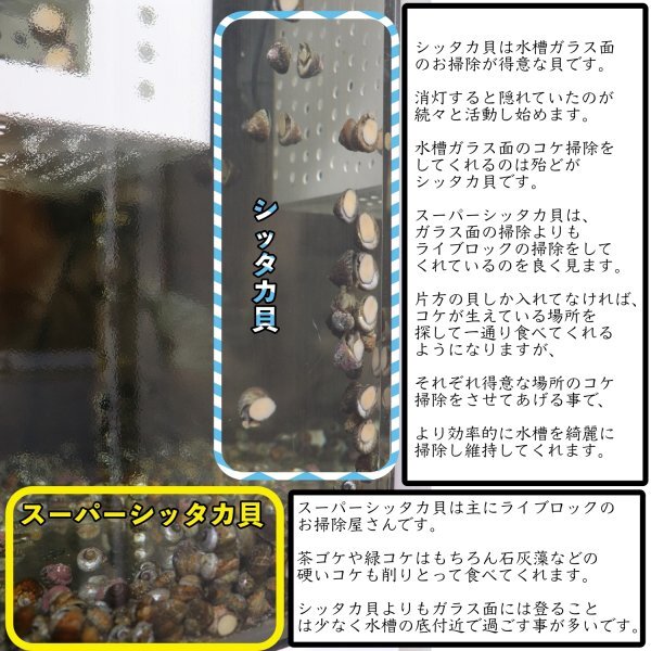 海水水槽のコケ取り貝として、カワハギやチヌ等の貝を食べる魚の生き餌など様々な用途に使えます。食用ではありません。