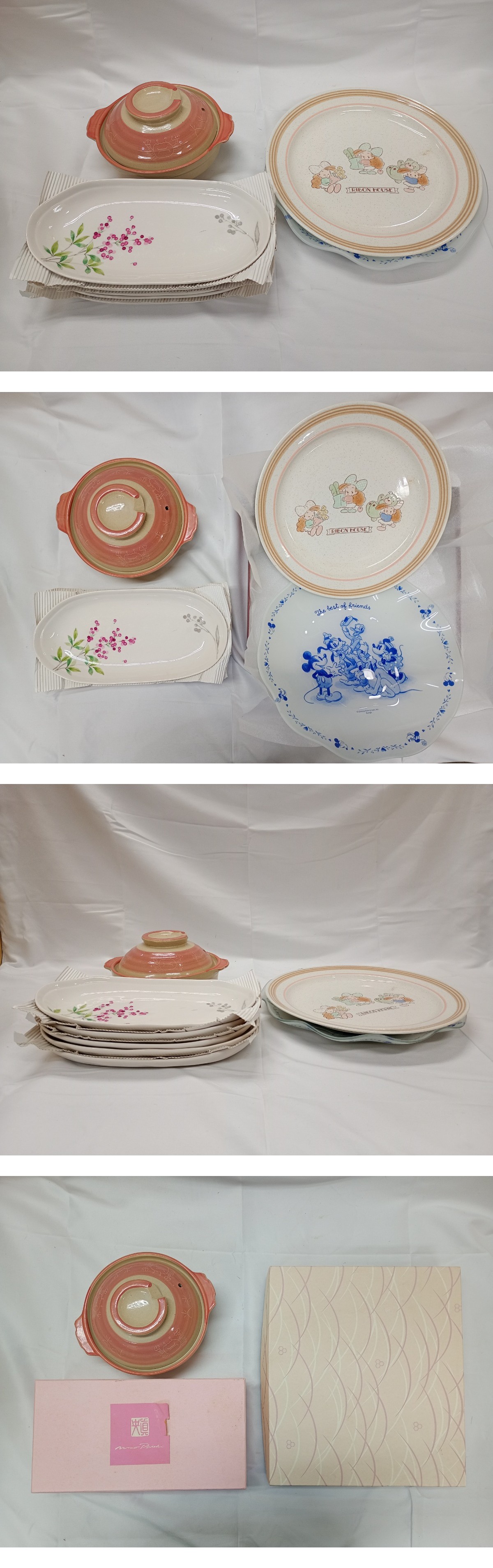 | ◎未使用品 大皿(径27.5cm)2枚 細長皿(長26cm)5枚 楕円形 陶器鍋 お得3点セット RIBON HOUSE ディズニーキャラクター | |