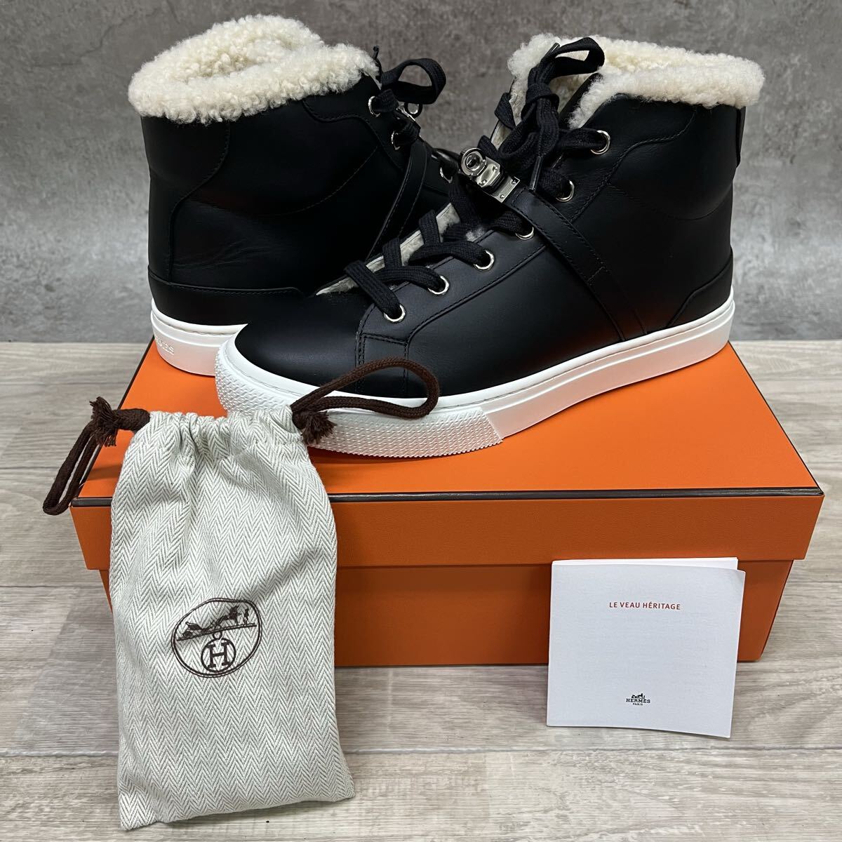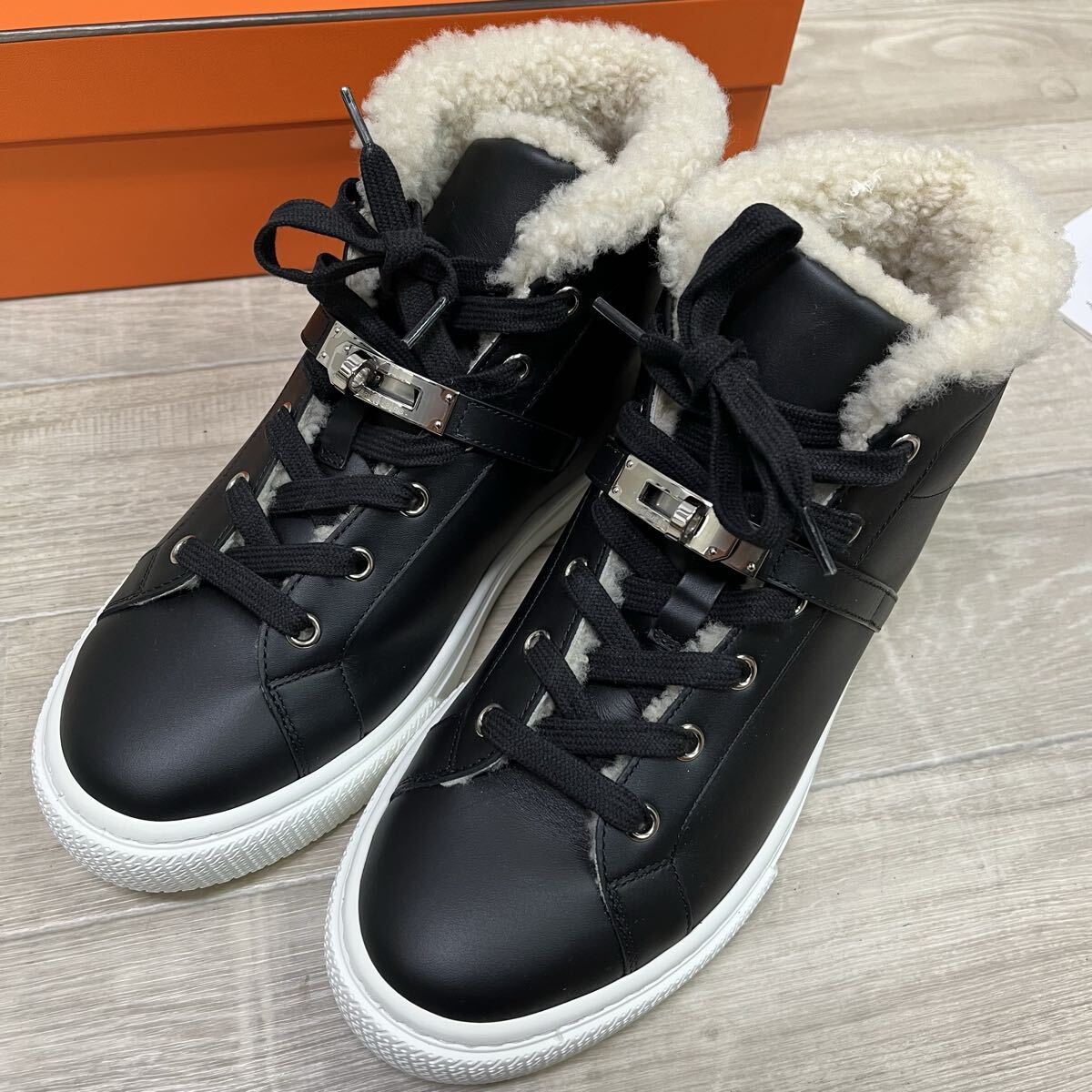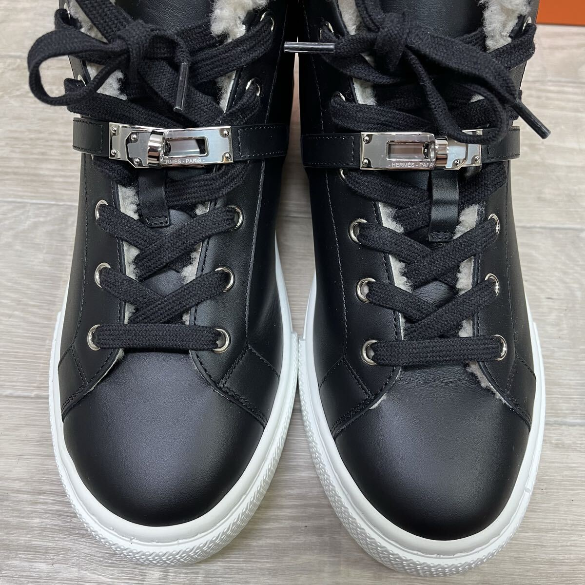 【648176cb】★新品未使用★ エルメス HERMES ムートン スニーカー デイドリーム 黒 ハイカット ケリー サイズ表記38