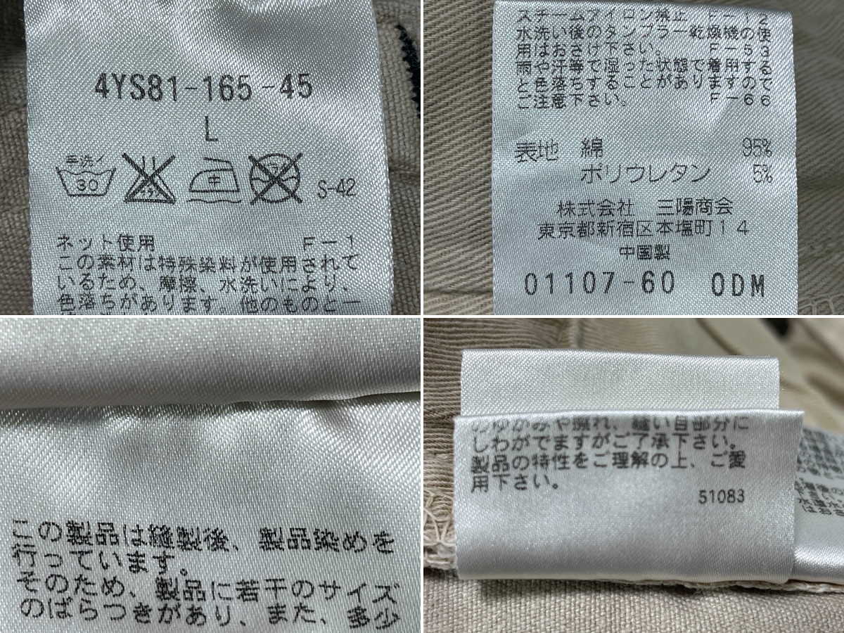 | ブランド:ZEGNA 型 番 :4YS81-165-45 カラー :アイボリー 状 態 :USED EZ by ZEGNA アイボリー デニムパンツ です。 シンプルで洗練されたデザインが特徴です。無駄のないミニマルなシルエットで、カジュアルながらも上品で大人の雰囲気を演出する品です。 左足の付け根付近に薄いシミありです。写真にて確認してください。 雰囲気が良いカッコイイデニムです。お探しの方お勧めの1本ですよ。 ■サイズ:製品表記 L ■サイズ:実寸(平置き) ウエスト 41.5cm (×2=約83cm) W33相当 股下 81.5cm 股上 24.0cm ワタリ 28.0cm すそ幅 21.0cm | ||