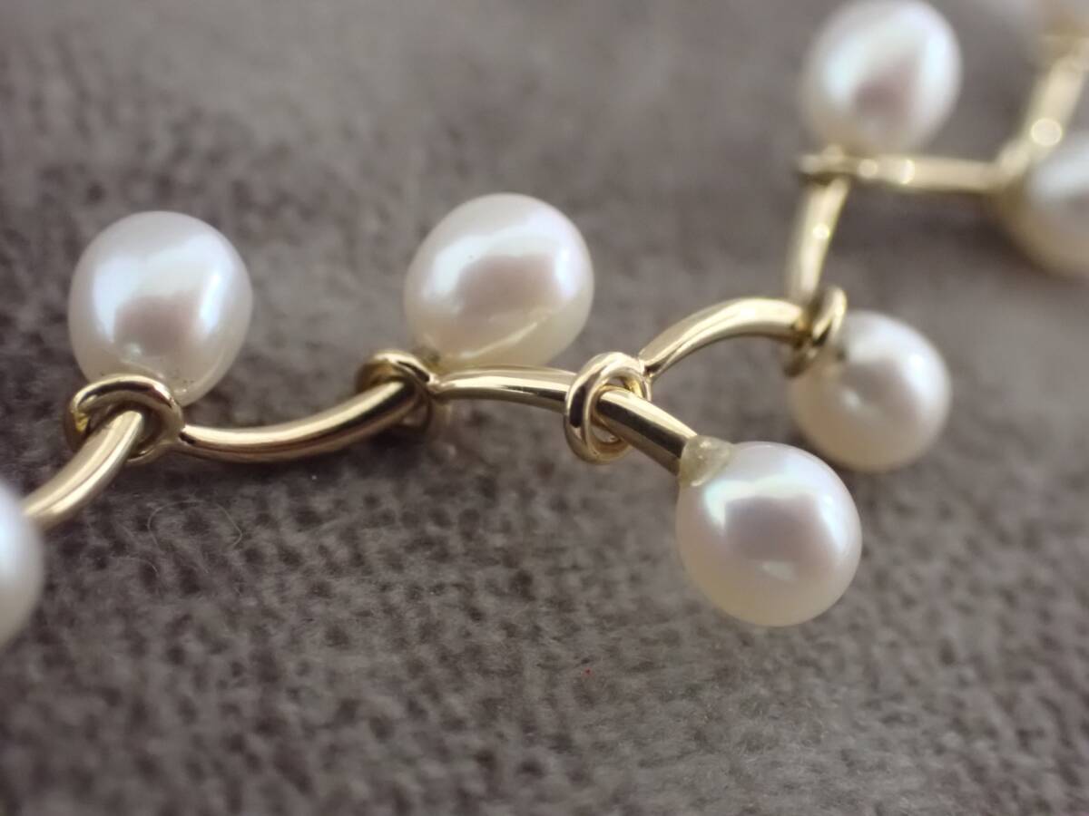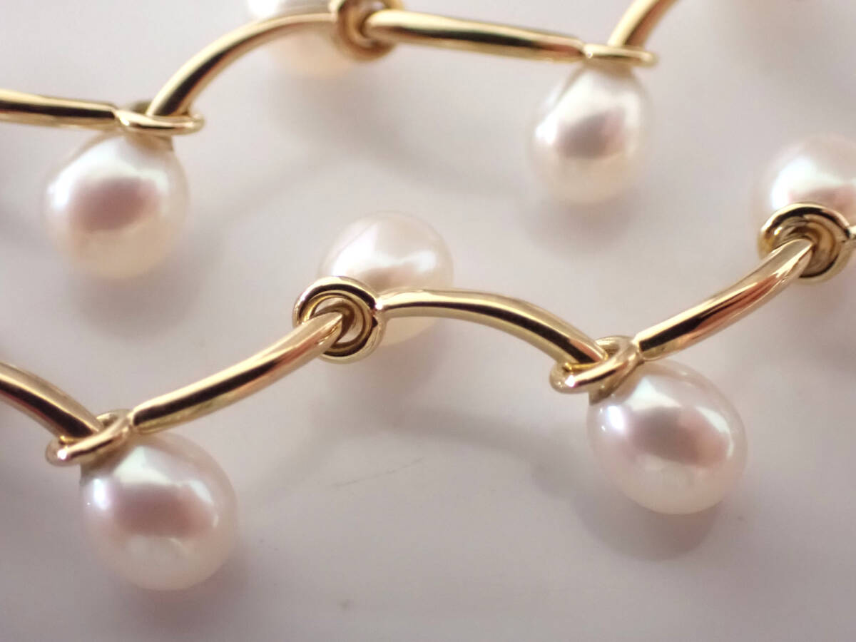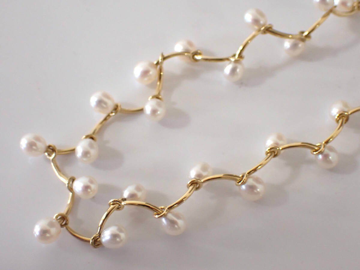 | コメント | 本商品は18金が使用されたネックレスです。 総重量は14.8g。 チェーンの長さは約47㎝。 チェーンの幅は約1㎜。 パールサイズは約3.5~4.2㎜。 細かいスレはございますが、全体的にきれいな状態でございます。付属品はなく、本体のみでございますが、緩衝材を巻いて丁寧に梱包し発送させていただきます。注文確定後は1~2日以内に発送いたします。 (土日・祝日は発送業務をおこなっておりません) ご検討のほどよろしくお願いします。 | |