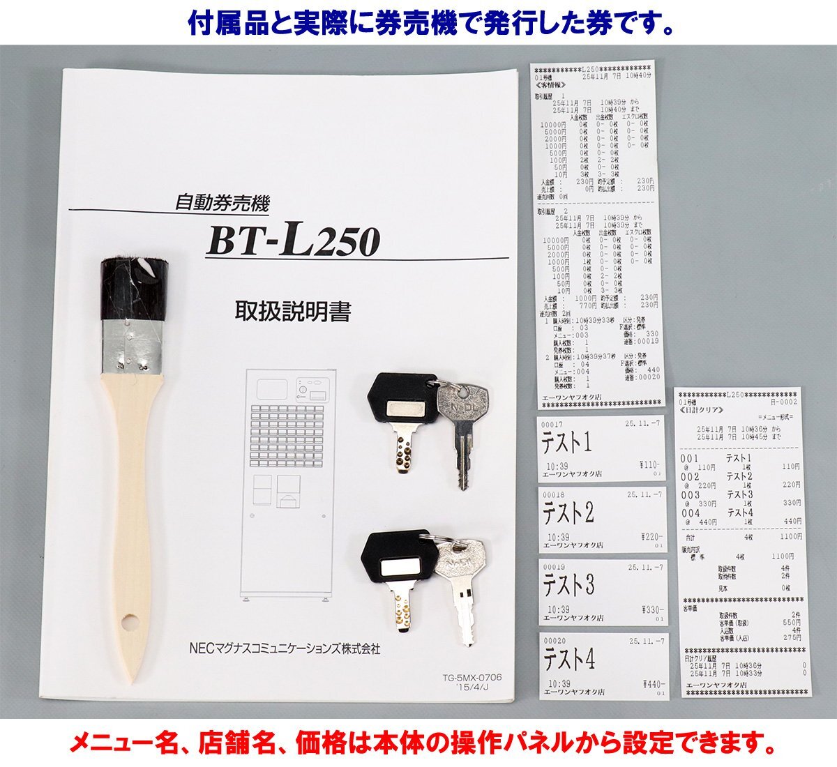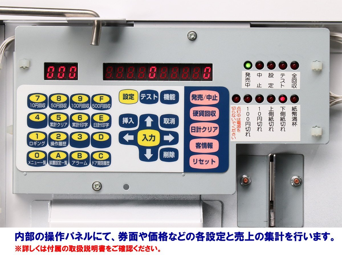 | ■ | 各設定から、紙幣・硬貨の識別、印字、発券、おつりの排出まで一通り動作確認済! 金額やメニュー名などの設定は本体の操作パネルにて変更可能! |
