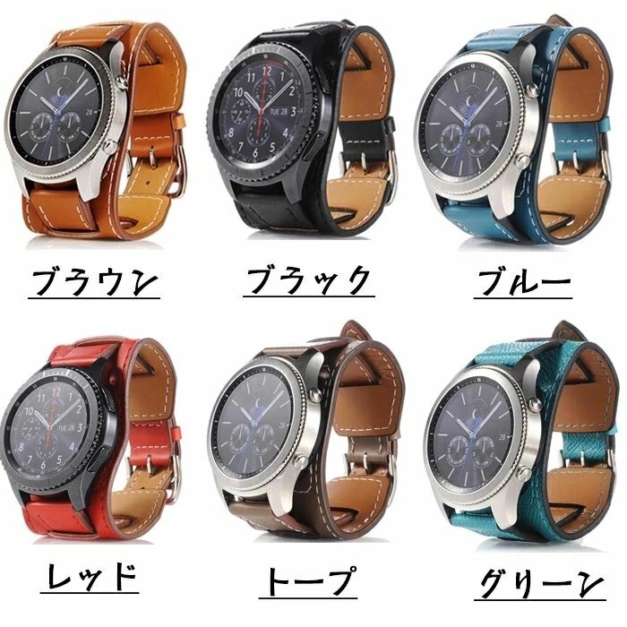 Galaxy Gear S3 S4 対応 バンド Gear S3 S4 バンド Galaxy watch 高級レザー製Galaxy Watch 46mm専用ハンド 交換ベルト本革【グリーン 】
