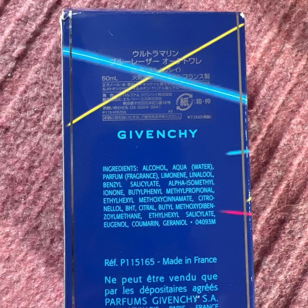 ◆ GIVENCHY ジバンシー ウルトラマリン ブルーレーザー -ULTRAMARINE BLUE LASER- オードトワレ -EAU DE TOILETTE (EDT) フランス製 定価 : 7,560円 2009年、ウルトラマリンの夏季限定品のコンセプトはブルーレーザー。 海辺の夜明け。水平線から差し込む光が、水面に反射して七色の光線を作り出す。 自然の世界から生み出される色鮮やかな蛍光色の光線。 海と夜明けの光とが織り成す、ダイナミックでありながら、群青を思わせる透明感ある爽やかな香り。
