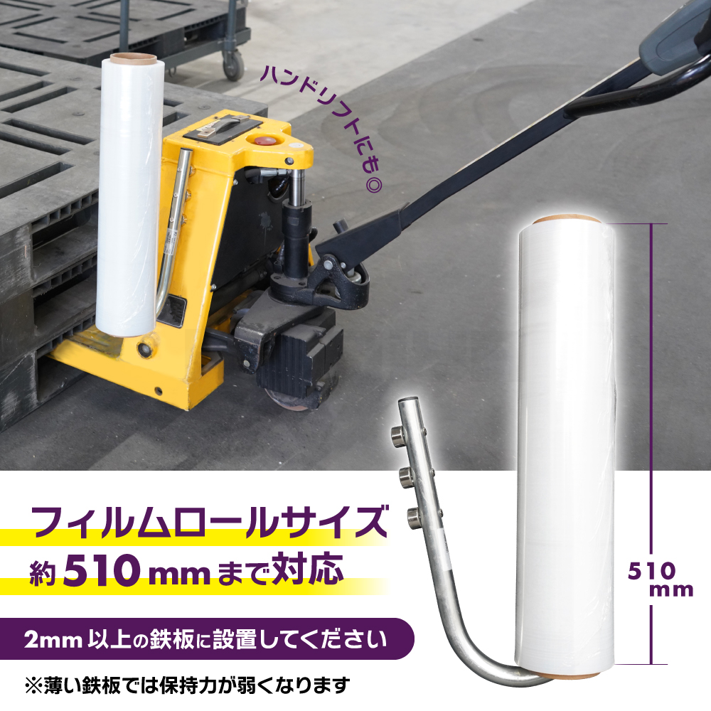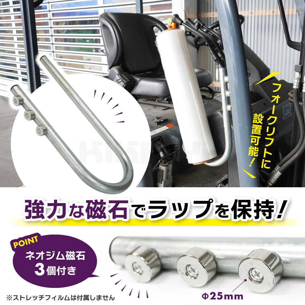 ●3つの強力なネオジム磁石で保持する、業務用ラップホルダーです ●フォークリフトのヘッドガードフレームなど、手の届きやすい場所に設置でき、 ストレッチフィルムをシート後方などへ無造作に置いてしまう危険を防げます ●あらゆるスチール面に設置できるので、作業場のわずかなスペースを活用でき、 ハンドリフトに取り付けると、移動と梱包をスムーズに行えます ●作業の効率化と安全確保、スペースの節約を実現します |