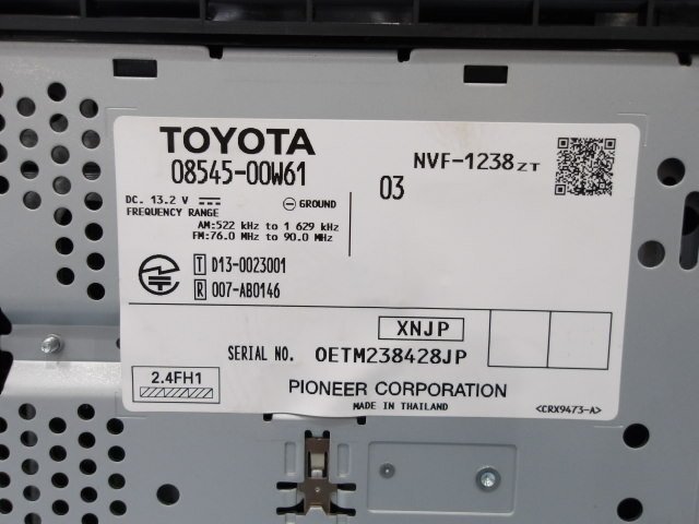 | ●中古 トヨタ純正 NSCP-W64 08545-00W61 地図データ2015年 パスワードロック品 メモリーナビ/Bluetooth/ワンセグ ワイド2DIN シリアルNo.OETM238428JP 初期動作確認済み。 地図データ2015年。 ●状態詳細 パスワードロックの為、入電のテスト確認までです。 GPS一体型TVアンテナ配線付き。 GPS一体型フィルムアンテナは付きません。 全体に小傷、汚れは有りますので画像にてご確認をお願いします。 ●即決や値引き、適合等にはお答えが出来ません。 ●中古品になりますので使用に伴う傷等はあります。神経質な方のご入札はご遠慮下さい。 ●買い取り車からの取り外しのため、使用期間、付属品等は不明です。商品は画像に写っている物が全てとなりますので画像でご確認の上、付属品が必要な場合はご用意下さい。 |