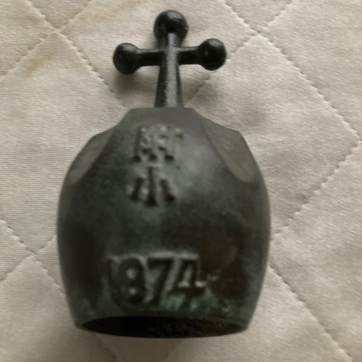 私の土佐.高知.田舎.近所.古い旧家屋敷の蔵の中に有った昭和時代.1974年.作家銘竹内清.材質は精銅です.綺麗な鐘の音が聞こえます.昭和37年二科会会員審査員.39年17回岡山文化賞.47年ギリシャ外遊.現在ノ-トルダム清.女子大学教授.岡山大学教育学部講師.岡山県美術展.勤労者美術展金重陶陽賞の各審査員.岡山県芸術祭運営委員です.重さ.約33 5g.横幅.約6cm.奥行き.6.2cm.高さ.約11cmです.ノンクレーム.ノンリターン.評価の低い入札者は此方でお断りする事が有ります。宜しくお願い申し上げます。