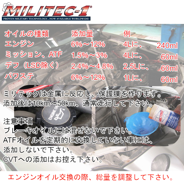 オイル添加剤 「ミリテック 小分け 1000ml」| 必ず、読んで下さい。 |