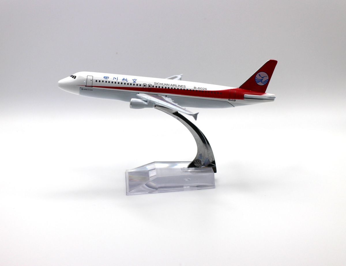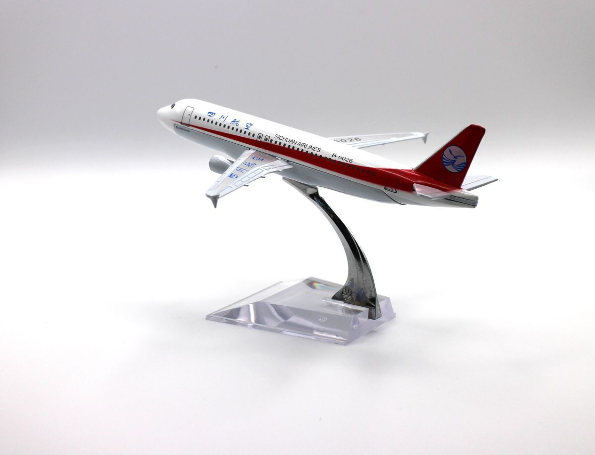 中国・成都を拠点とする四川航空のエアバスA320型機を再現した、全長約16センチのダイキャスト製モデルプレーンです。