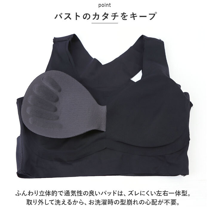 | 商品説明 | ・・心地よいホールド力で、すっきりフィット。きれいなシルエットを作り出す、フロントホックタイプのノンワイヤーブラが新登場。 ・【ストレスフリーな付け心地】 ・窮屈感が苦手な方にぴったり。締めつけ感のないノンワイヤータイプ◎ ・【フロントホックタイプ】 ・着脱がカンタンで、3段階サイズ調節可能。サイドから寄せてキレイな谷間を作り出し、授乳もスムーズに対応! ・【バストのカタチをキープ】 ・ふんわり立体的で通気性の良いパッドは、ズレにくい左右一体型。取り外して洗えるから、お洗濯時の型崩れの心配が不要。 ・【背中をキレイに魅せるクロスベルト】 ・背面は、4方向から支えるクロスベルトデザイン。肩甲骨を動かしやすく、安定感もばっちり。 ・【脇高設計】 ・バストの揺れを抑え、横流れを防止。体に食い込むことなく、サイドも背中もすっきり。 ・【オールシーズン快適】 ・サラッとした生地感で、汗をかいてもムレにくい!ナイトブラや、ホットヨガなどのスポーツブラとしてもおすすめ。 |