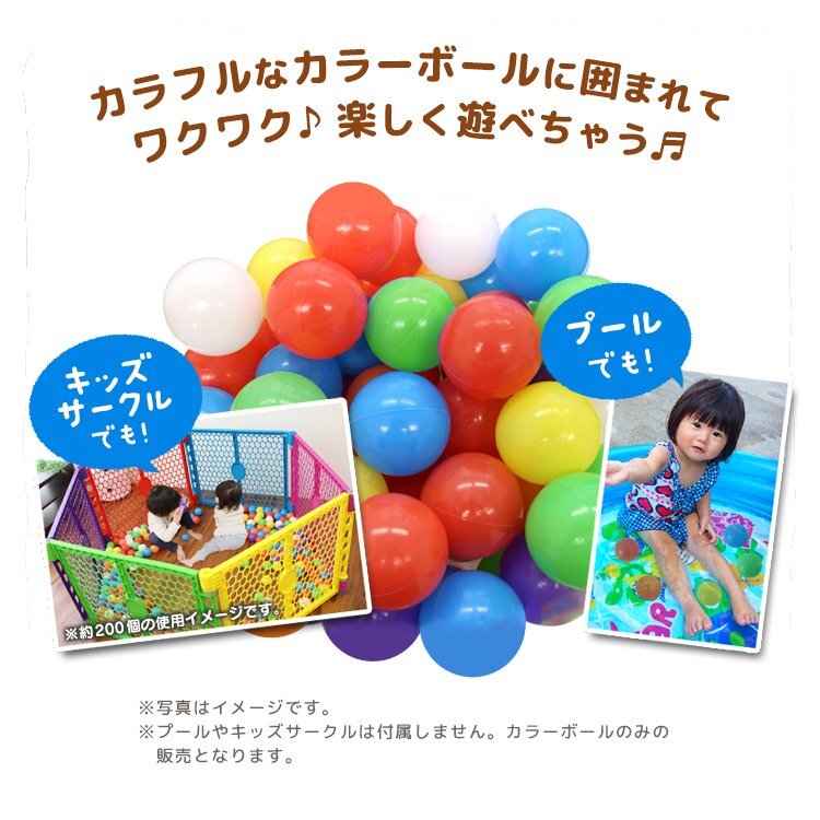 子どもプールやボールハウス、プレイハウスに最適なカラーボールです。 やわらかい素材で、当たっても痛くないので、投げて遊んで他のお子様に当たってしまっても大丈夫♪ 安心してお子様を遊ばせることができます! 【商品詳細】 内容:ボール ×100 ※7カラー(グリーン、レッド、パープル、イエロー、ブルー、ホワイト) 対象年齢:6ヶ月から8歳頃まで サイズ:(約)Φ5.5cm 重量:(約)36g(100個) 素材:プラスチック(食品レベル) 【もちろん新品未使用品です】 ▼検索キーワード ベビーサークル 折りたたみ ベビーガード ベビーフェンス キッズサークル ペットケージ カラフル おしゃれ ベビー サークル 赤ちゃん ベビー フェンス ゲート 柵 子供部屋 キッズスペース 置くだけ キッズ スペース 子供 |