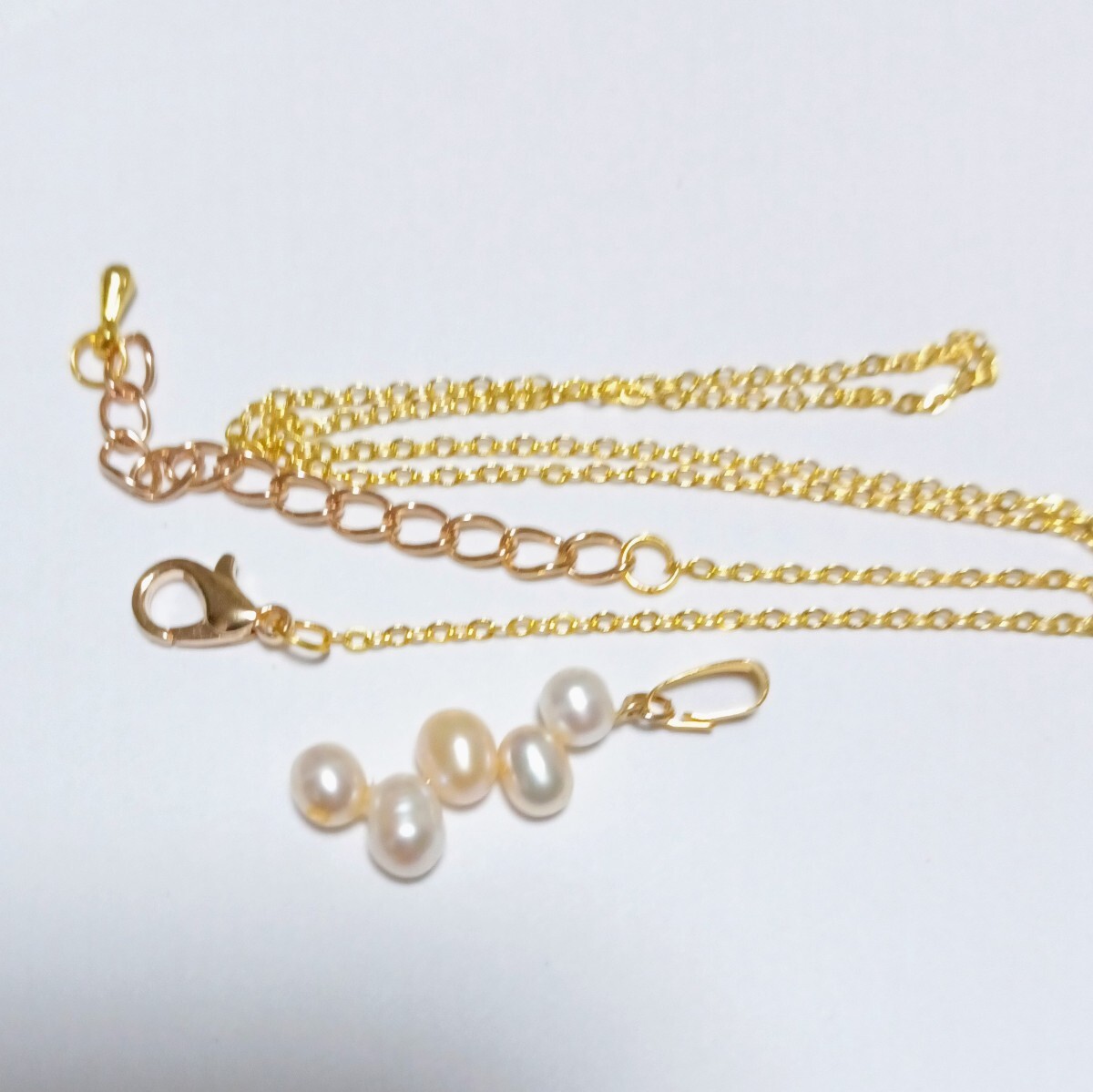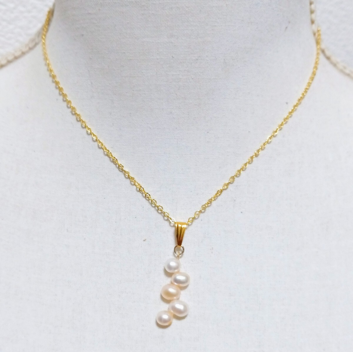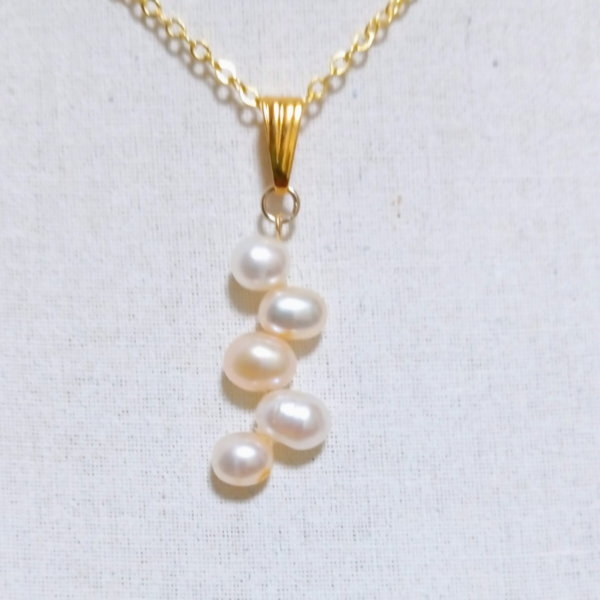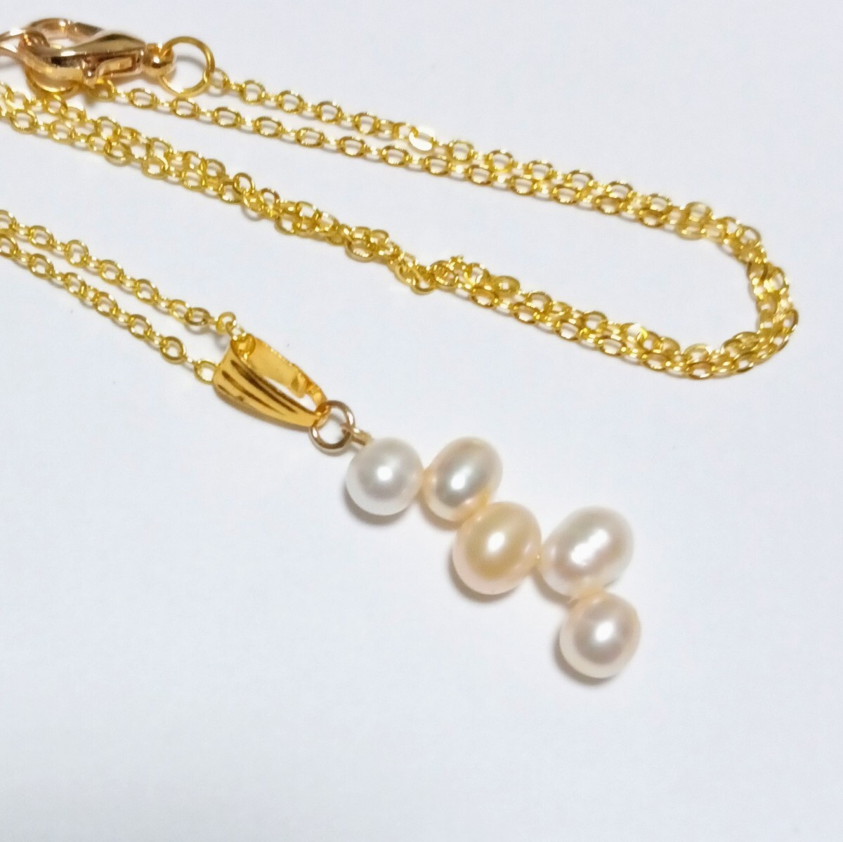 色、照りのきれいな淡水パールを5個重ねたペンダントトップとチェーンネックレスです。| 出价者 | 信用 | 价格 | 时间 |