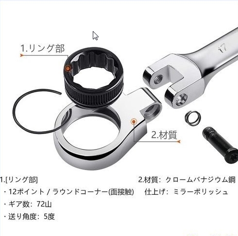 首振り ラチェットレンチ&コンビネーションレンチ 72歯