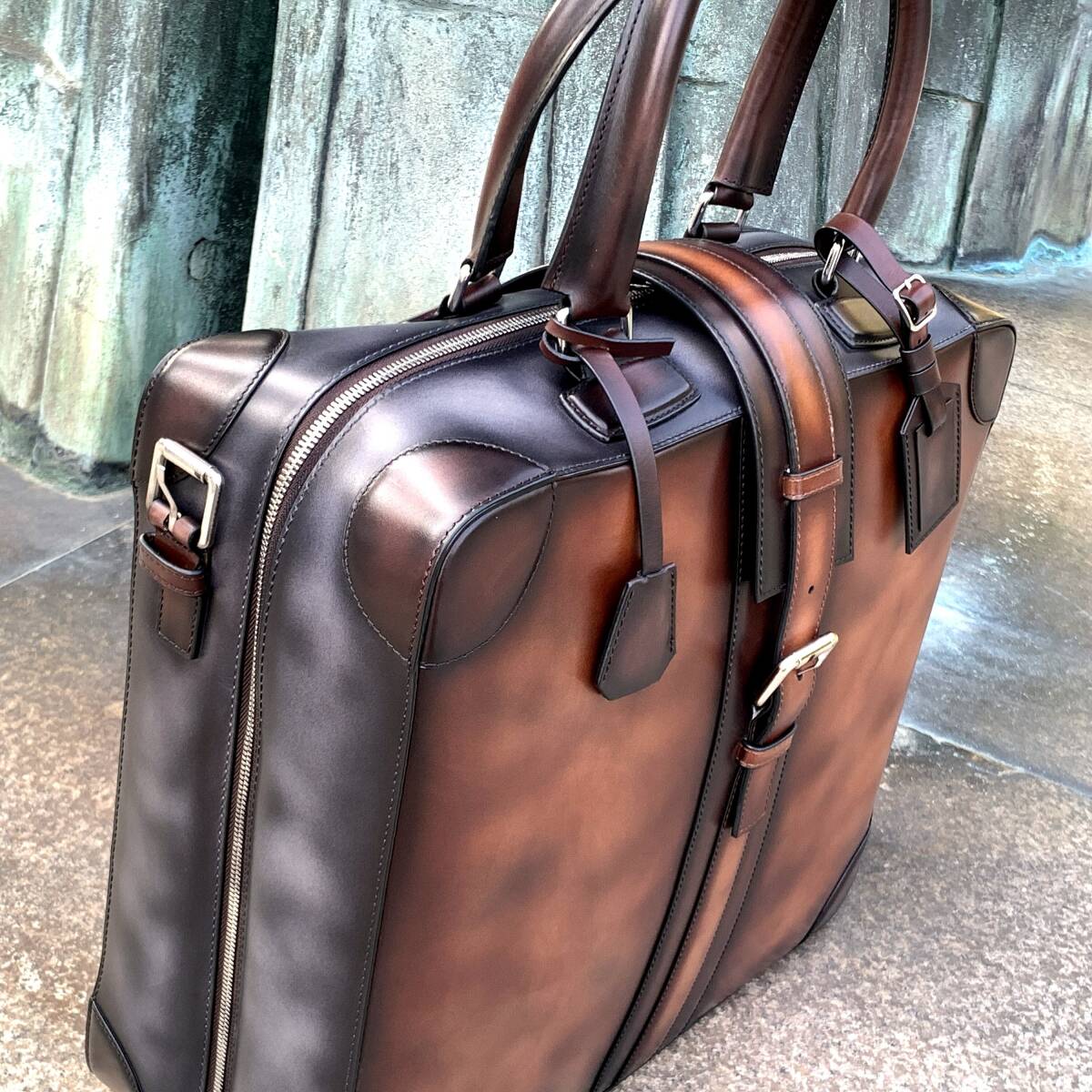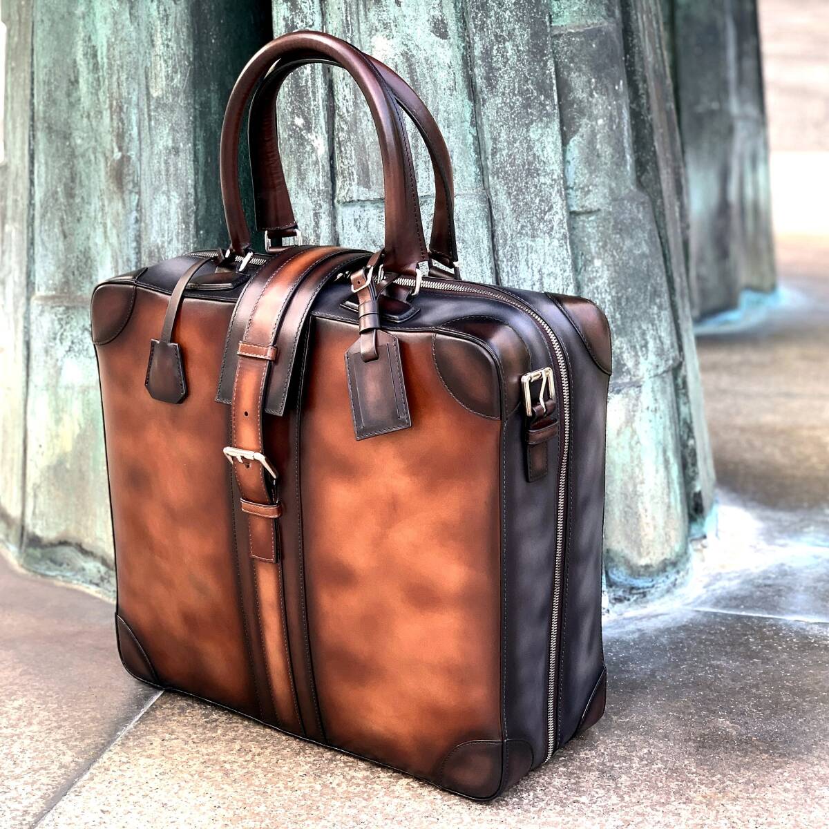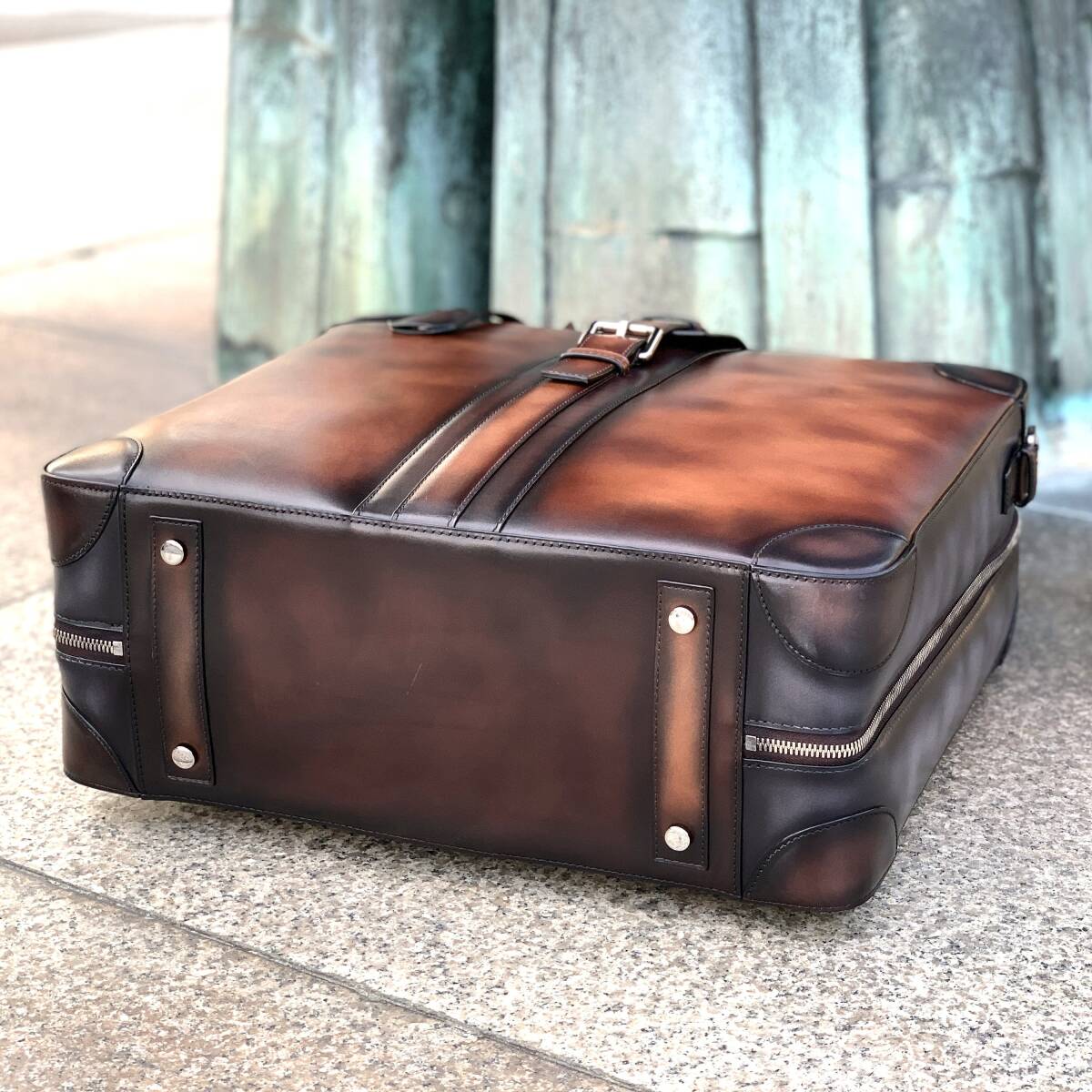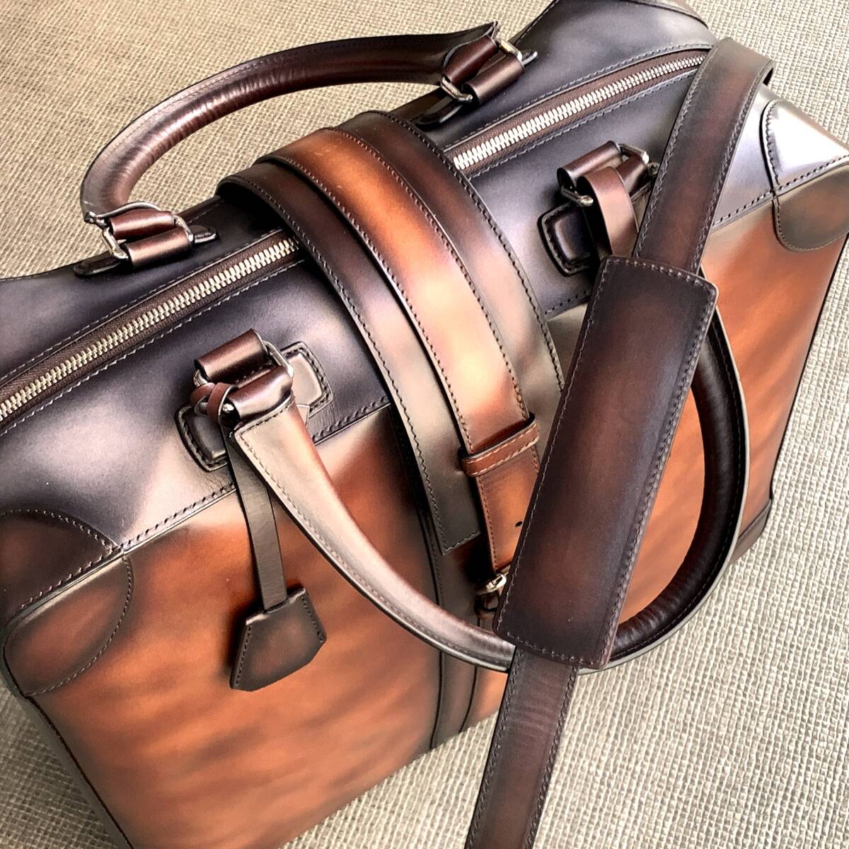 エル エクレのボストンバッグになります。 職人が一つ一つパティーヌを施す事がメインのスペイン製のブランドになりまして、美しく華やかな色合いが目を引く非常のラグジュアリーなブランドです。近年ベルルッティやサントーニを筆頭にパティーヌの美しさが注目され、現在では非常に高価で希少な物という位置付けになっています。まだブランド自体が始まったばかりで全く出回っていないブランドですので、他の方と差を付けたい方には是非お勧めです。 こちらは2トンカラーのパティーヌで構成されており、トートバッグの中でも少し大きめのトラベルトートです。品格や優雅さというモデル名の通り、旅行ではもちろん、デイリーユースとしてシンプルな服装に合わすだけでもその時間を上質にしてくれる。こだわりを持つ方々から、必ず視線を集める事をお約束いたします。サイドに付けるショルダーも付属にございます。 【他にもエル エクレの商品を多数出品しておりますので、よろしければご覧下さいませ。】 |
