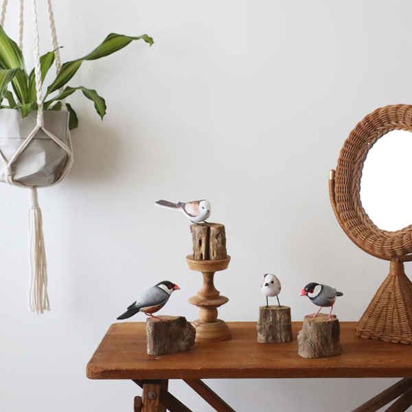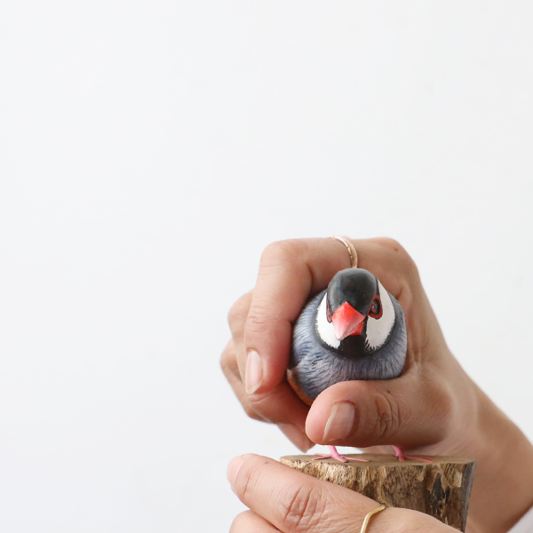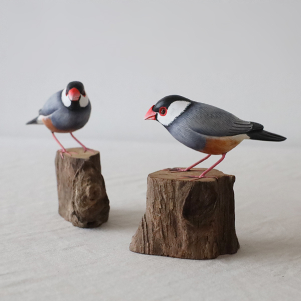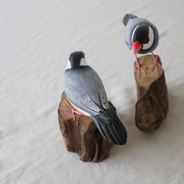 ちょこんと流木に止まる姿が可愛い桜文鳥。