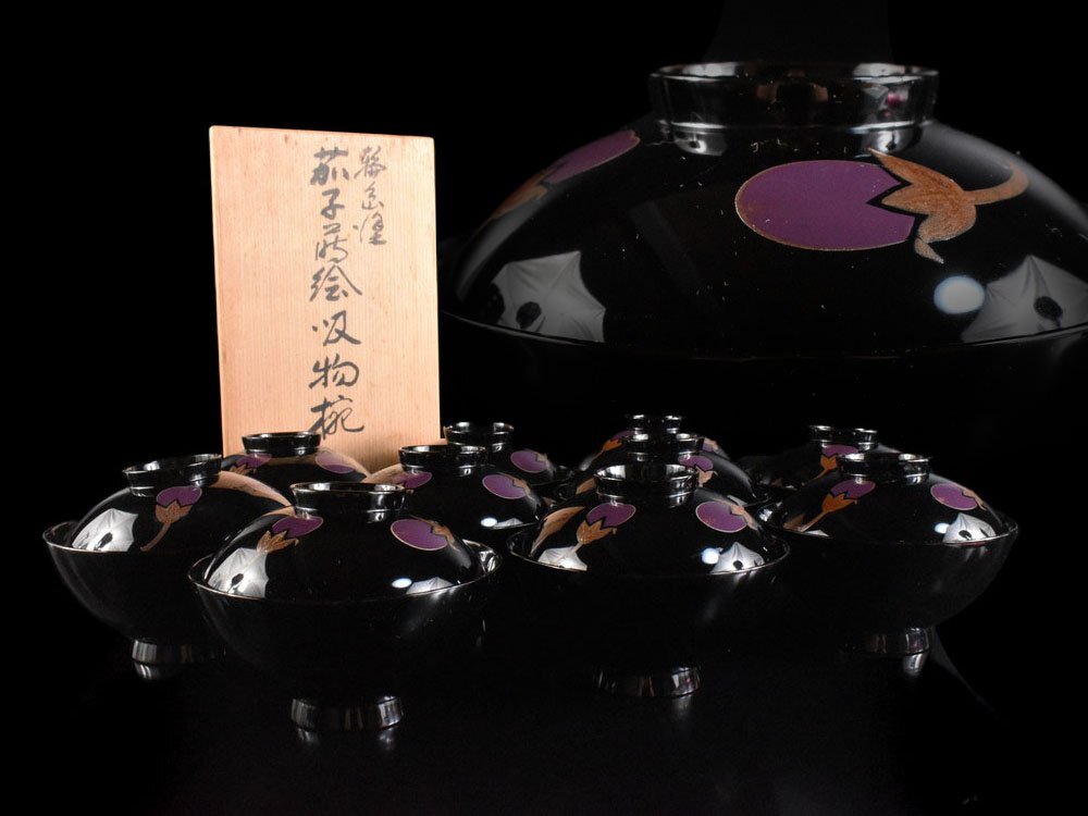 | 商品名 | 【雲】某有名収集家買取品 輪島塗 茄子蒔絵 吸物椀 10客 箱付 古美術品(蓋付碗 懐石料理道具)Y7469 LTcfd |