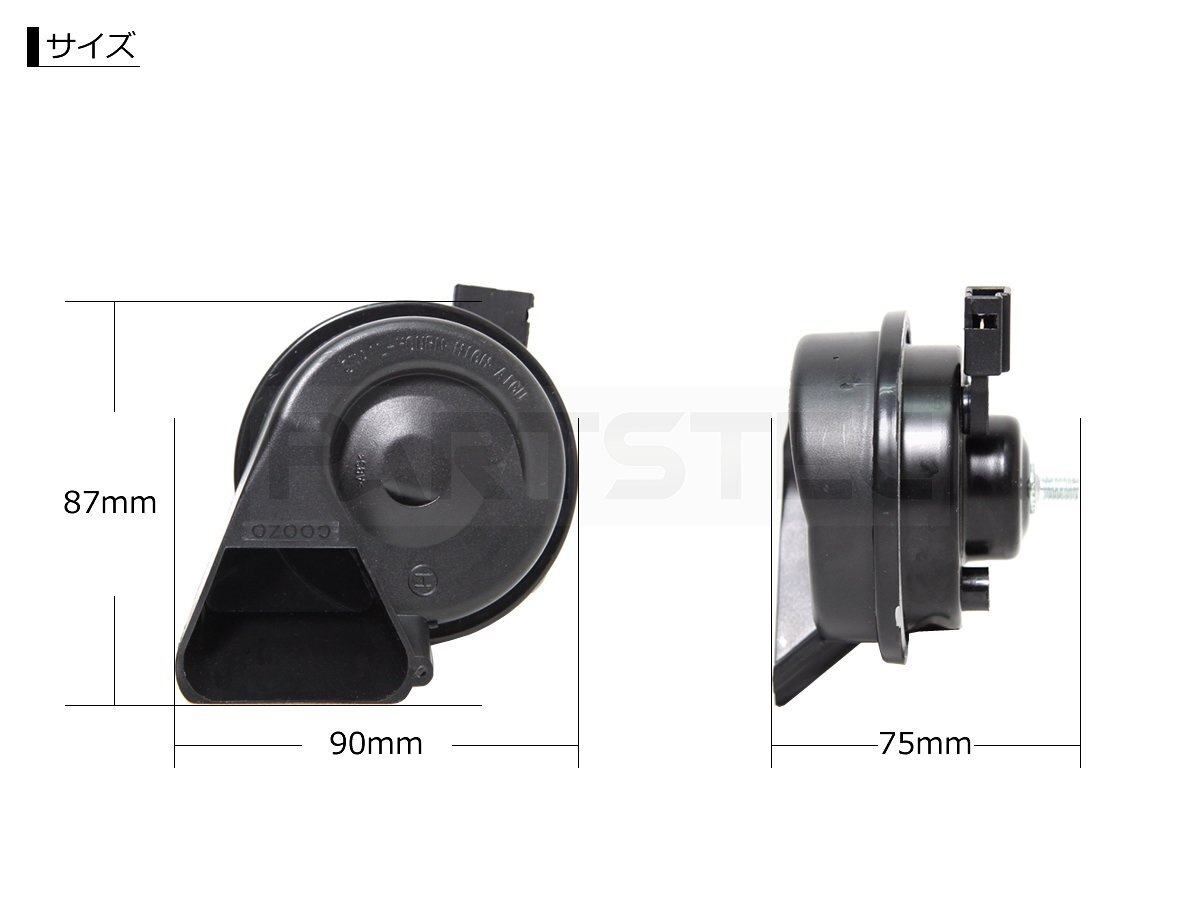 | 仕様 | ・電圧 DC12V ・電流 4A*2 ・音圧 110dB ・周波数 Hi 500Hz Lo 400Hz |