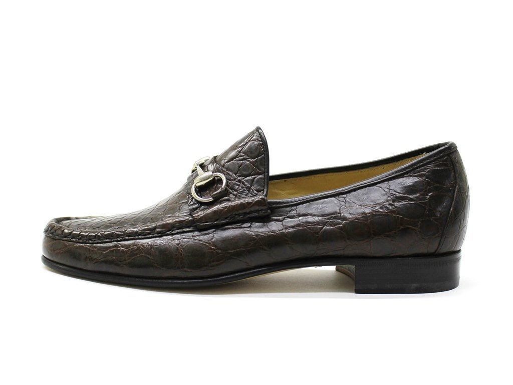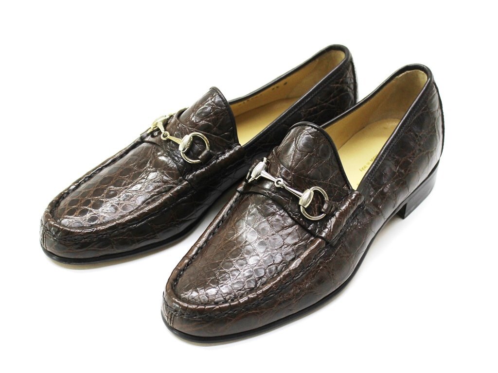110万新品◆8H=27.5cm◆GUCCIグッチ ホースビット クロコダイル クラシック ドレスローファーシューズ 焦茶ブラウン