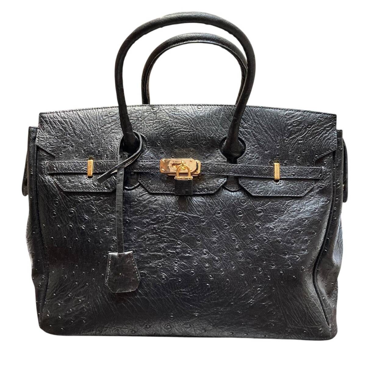 | オーストリッチ ゴールド金具 カデナ ブラック ハンドバッグ レディース |