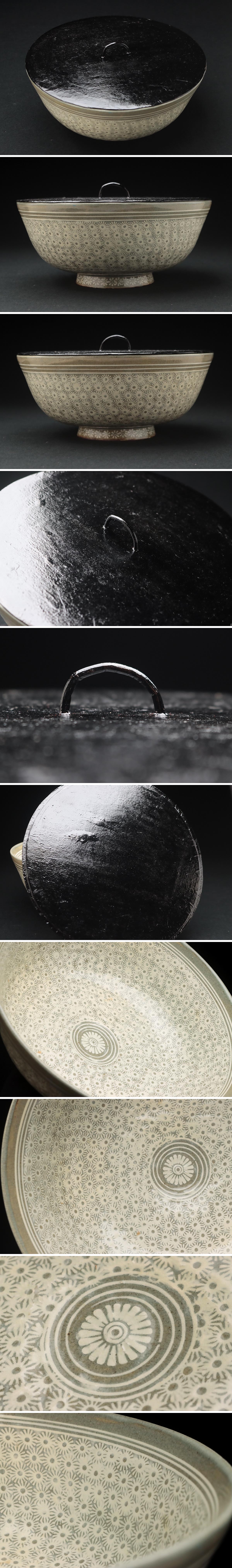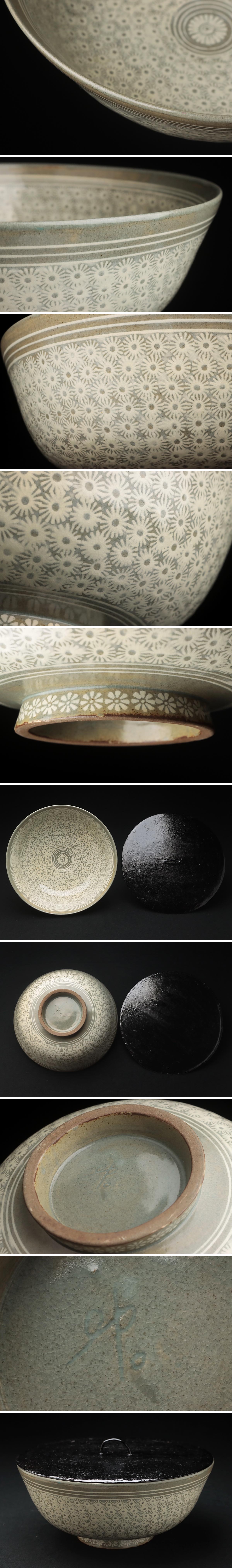 | ◆ 【韓国人間国 松南 申相浩 作】釜谷陶房 高麗陶窯 三島花文鉢・三島花文平水指 塗蓋付 茶道具 茶具 韓国陶磁 ◆