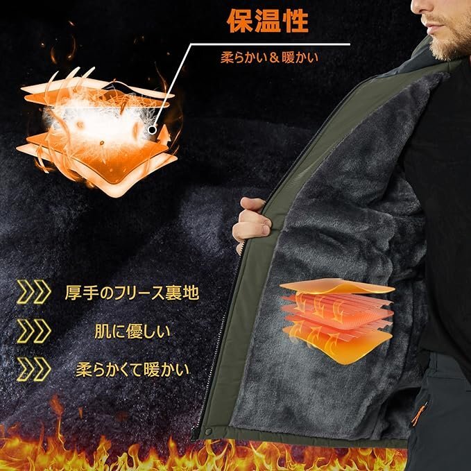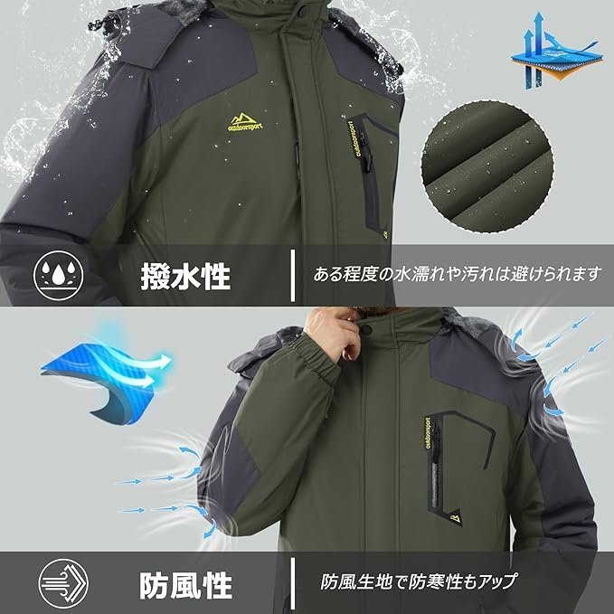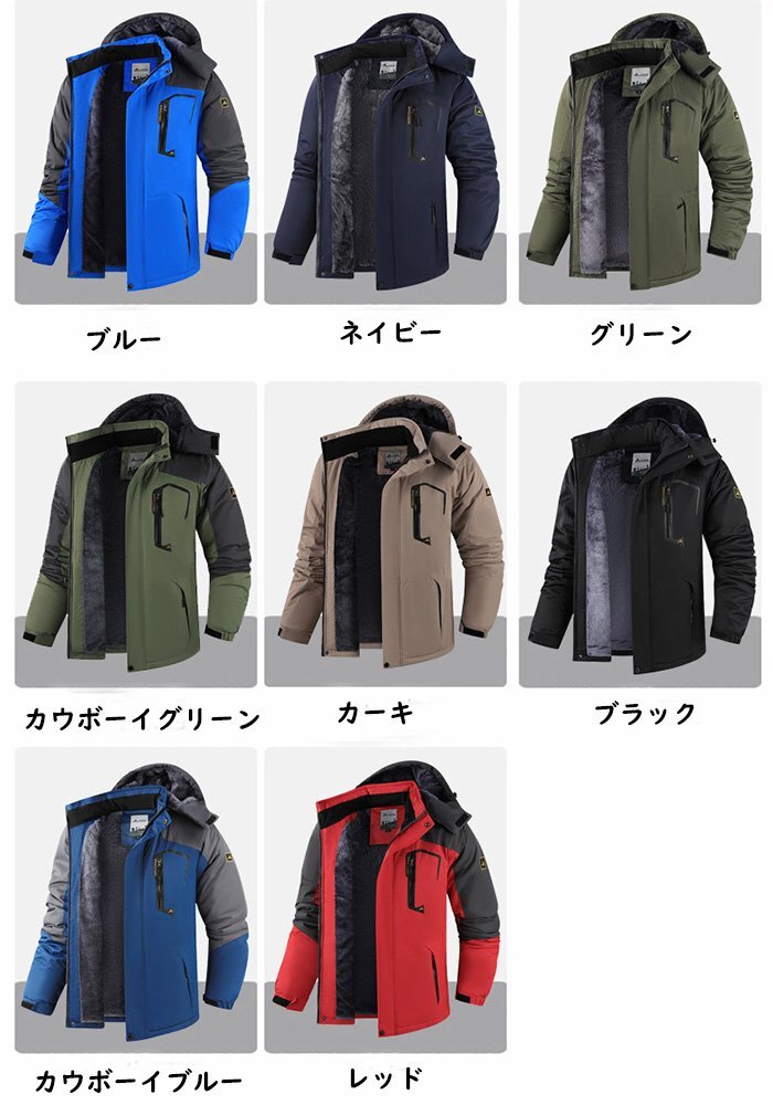 【設計】1.裏起毛:ジャケットの内は裏起毛ですから、保温性が強い。 2.取り外しできる帽子:防風帽は取り外し可能ですから、環境や天気や自分の愛好によって、勝手に切り替わります。 3.帽子はひも付きの設計:ひもは大きさを調節できて、帽子を頭に合わせることができます。 4.カラーボタン:シンプルなカラーボタンデザインで、防風と着心地がいい。 5.防水ポケット:胸ポケット*1、サイドポケット*2、内ポケット*1。すべてのポケットはファスナー付いて、安全性を強めます。 6.袖口は伸縮性があり、袖口には収縮デザインを付いて、冷たい空気の侵入を防止できます。大きさを調節できて、防風と防寒性能を高めます。全面的に暖かさを保ちます。| 出价者 | 信用 | 价格 | 时间 |