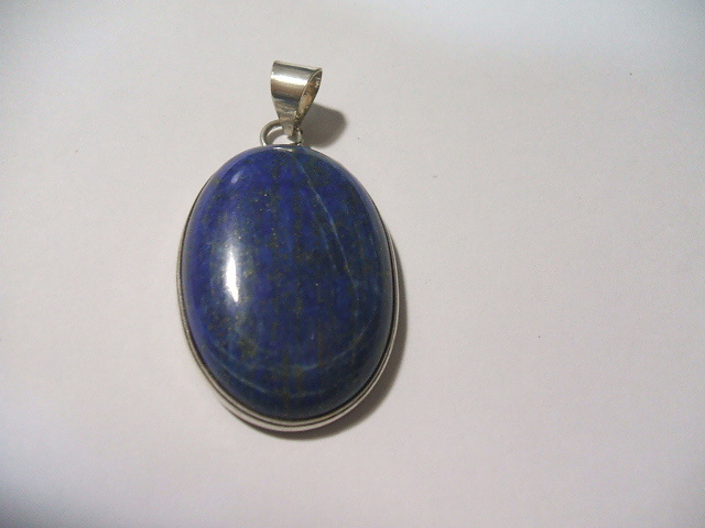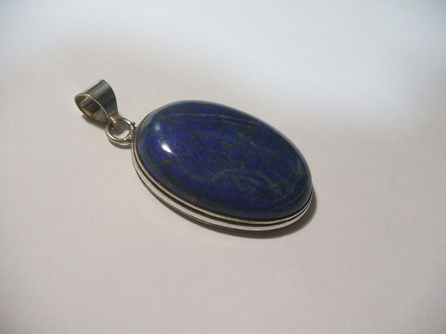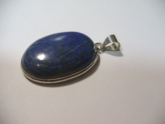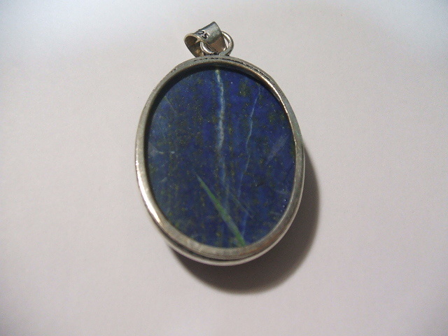 濃紺のラピスラズリトップです。写真では分かりにくいですが、石の表面に金色のパイライト(黄鉄鉱)の粒やスジ状の模様が美しく広がっています。石の大きさは3.4x2.3センチ。金属はシルバーで925の刻印があります。| 出价者 | 信用 | 价格 | 时间 |
