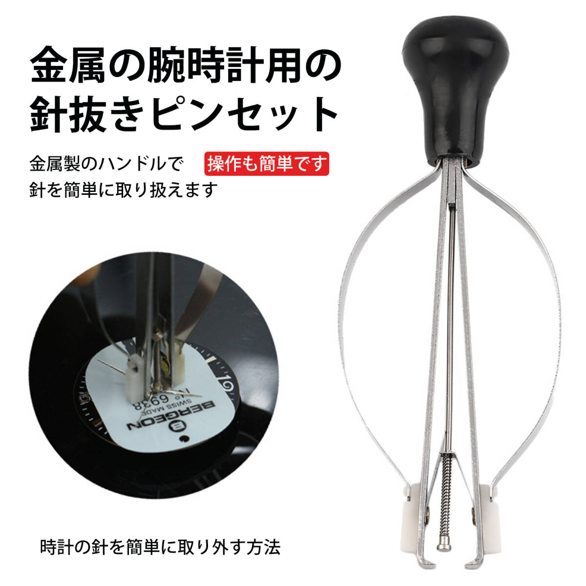 | 使用方法 | 針抜きのピンセットを針板の下に差し込み、針の根元を挟んで、足を平行に盤面に押し当て、両指で両側のバネ片を均等に力を加えて挟むと、簡単に針を引き上げて外すことができます。3本の針を同時に取り外すことができます。 |