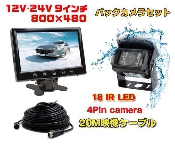 9インチ大画面 高輝度モニター+バックカメラ+20Mケーブルのセットです!