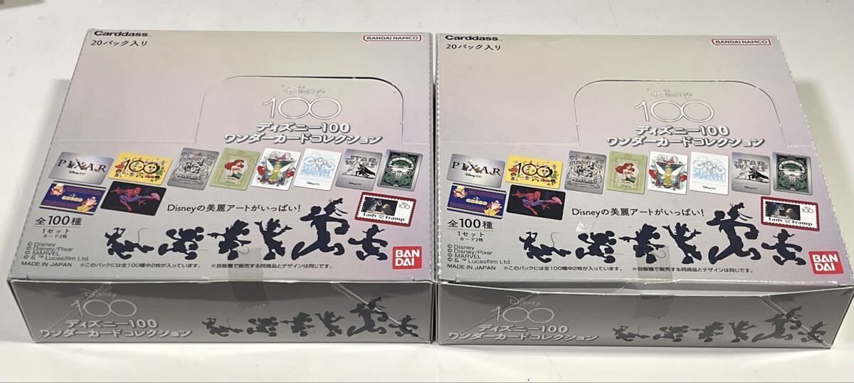 ディズニーの美麗アートが満載のカードダスコレクション、全100種、20パック入りが2箱です。